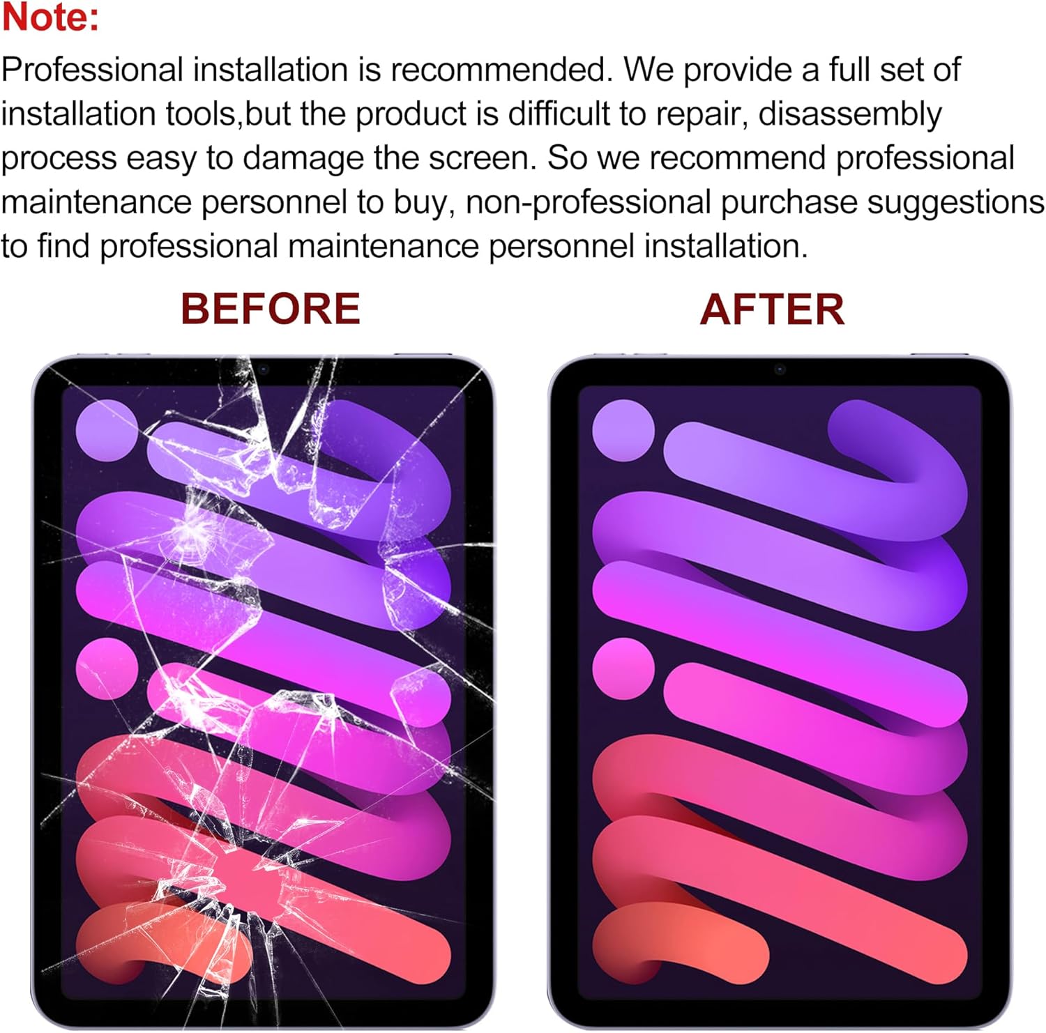• 【Kompatibles Modell】:Dieser Touchscreen Ersatz für iPad mini 6 A2567 A2568 A2569 , bitte bestätigen Sie Ihr Gerätemodell, bevor Sie eine Bestellung aufgeben.