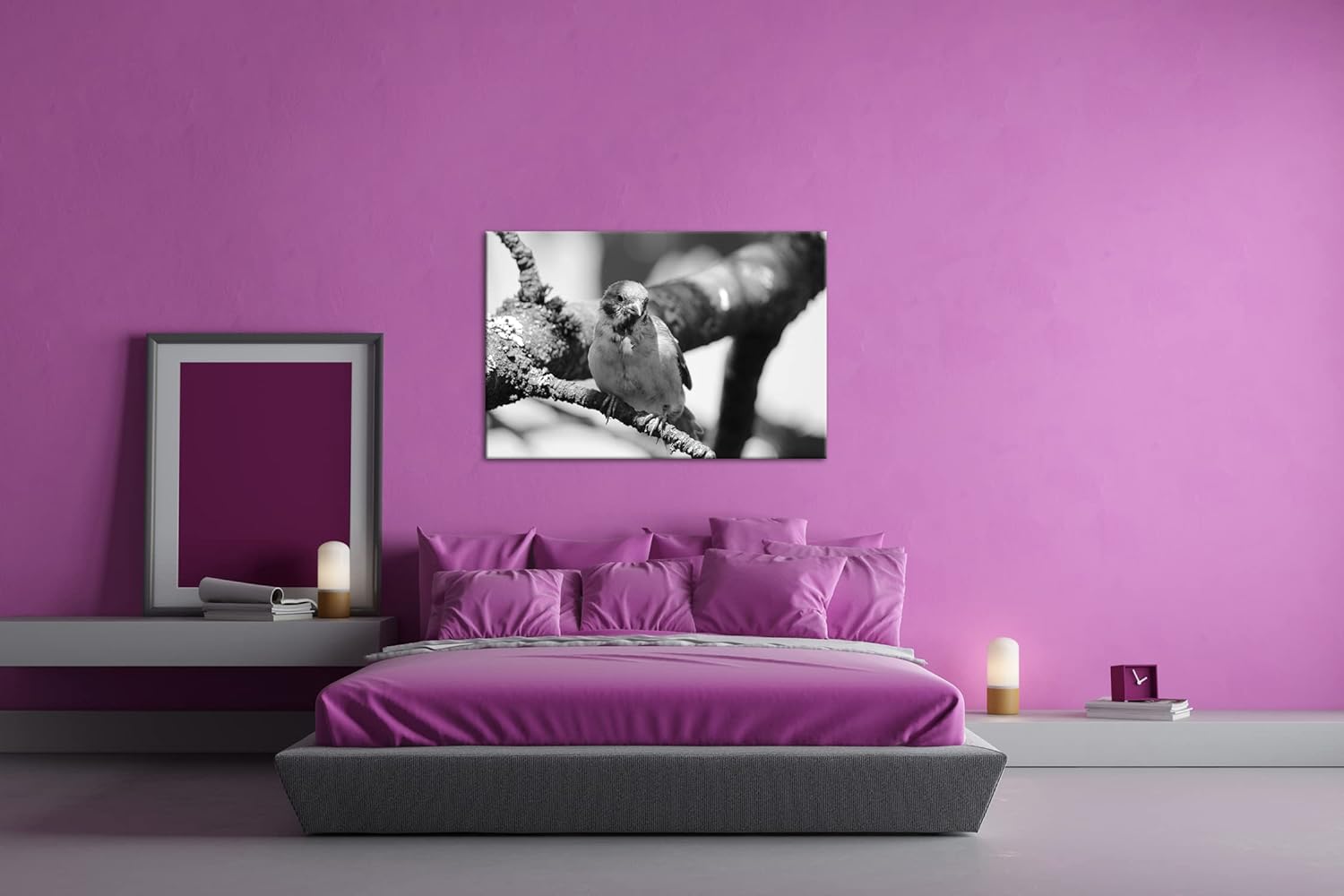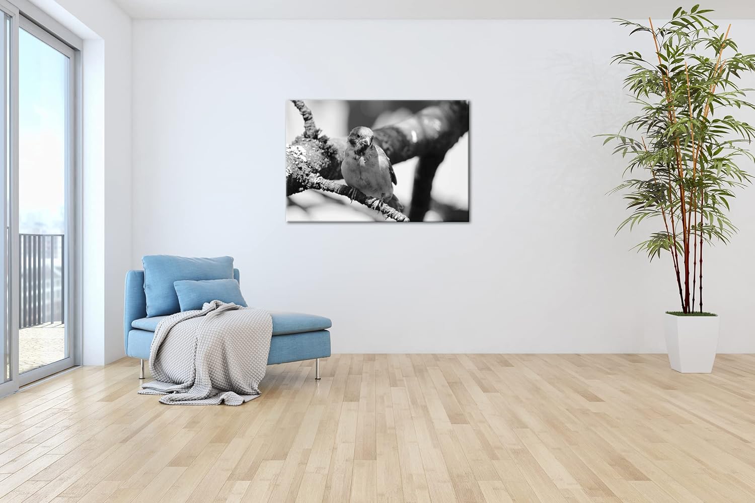 deyoli neugieriger Vogel Format: 80x60 Effekt: Schwarz&Weiss als Leinwandbild, Motiv fertig gerahmt