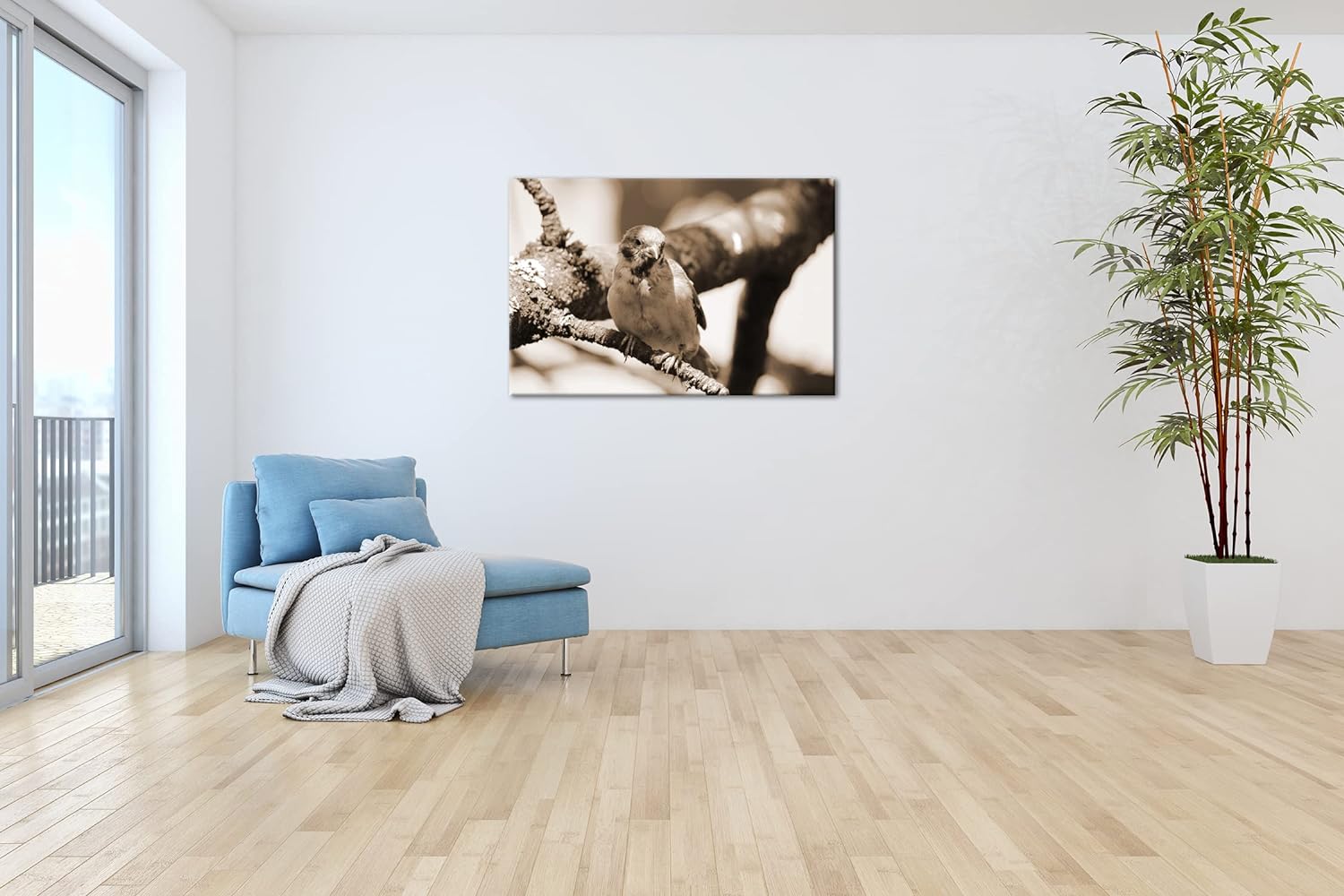 deyoli neugieriger Vogel Format: 80x60 Effekt: Sepia als Leinwandbild, Motiv fertig gerahmt auf Echt