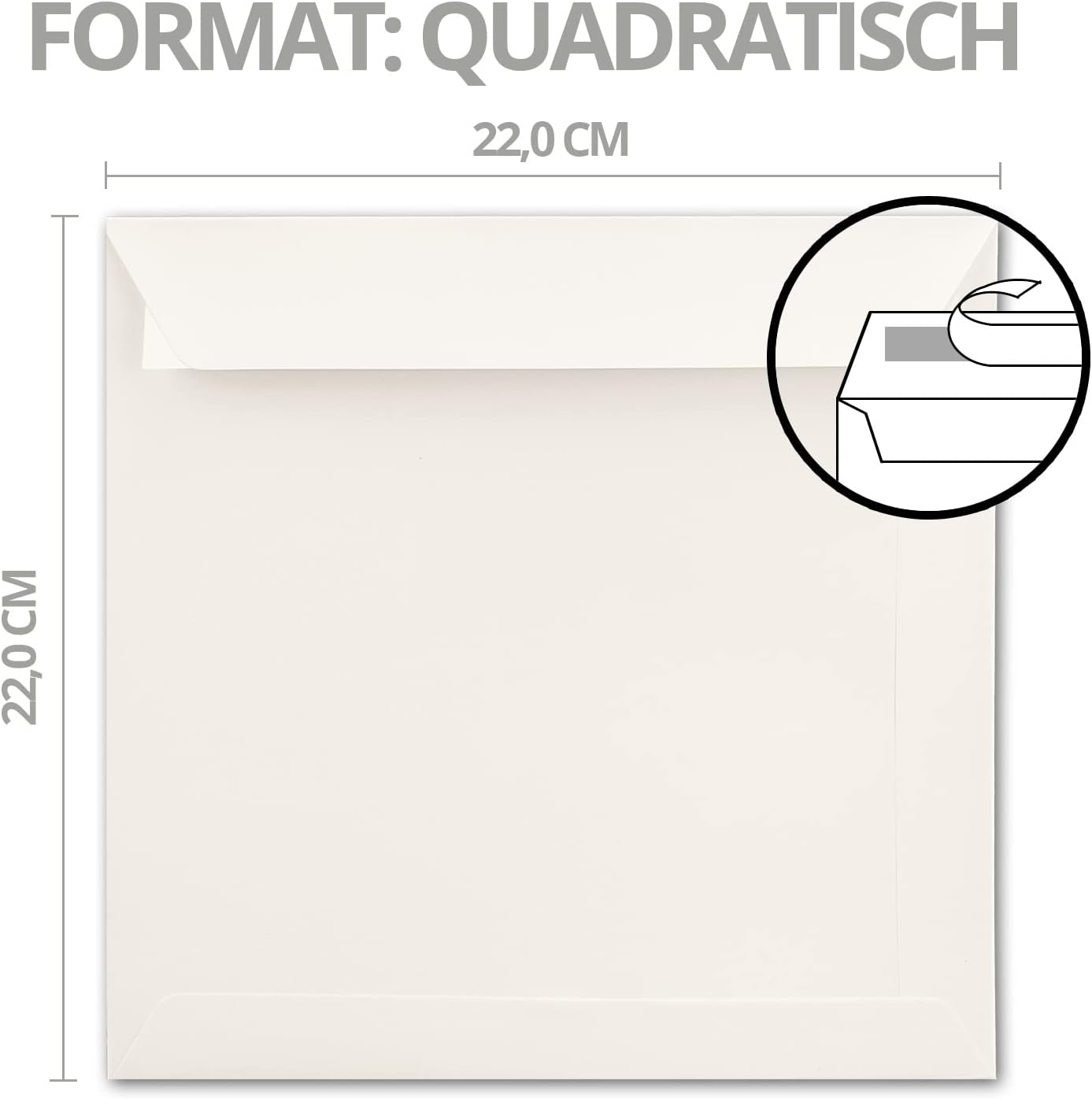 - Format: Quadratisch - Grösse 220 x 220 mm (22x22 cm) - Haftklebung mit Abziehstreifen, gerade Klappe, ohne Fenster