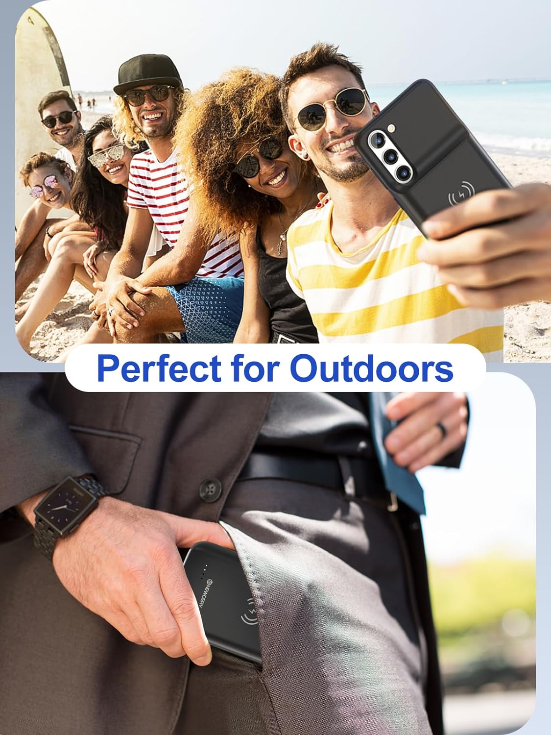 - 【Unterstützt Qi Wireless Charging】 Das Samsung Galaxy S23 Akkugehäuse unterstützt schnelles und bequemes kabelloses Laden. Sie können Ihr Galaxy S23 und das Ladecase gleichzeitig mit jedem Qi Wireless Charging Pad aufladen, das mindestens 5 W