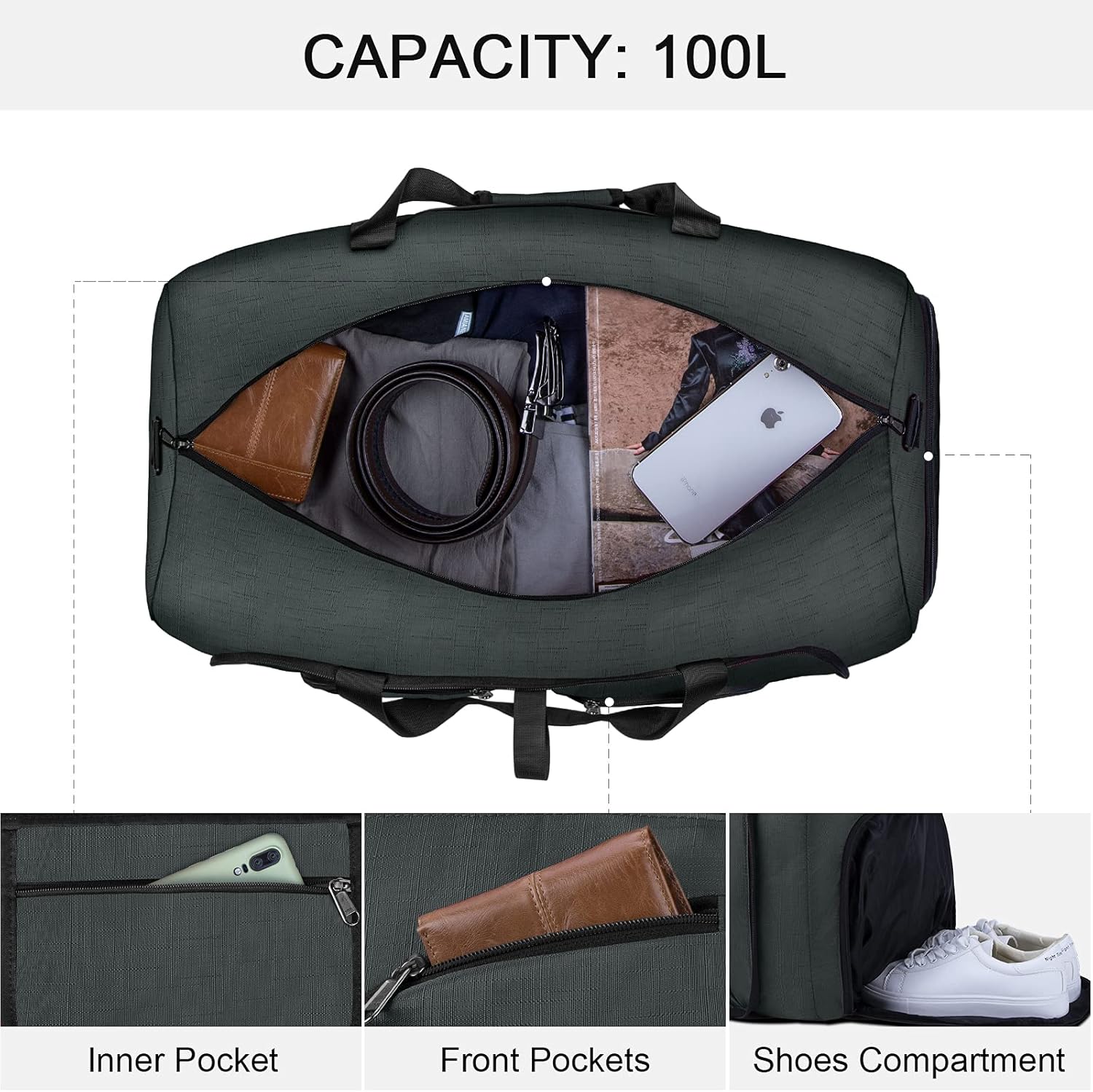 - Grosse Reisetasche】Grösse 40L: 54 x 26 x 30(cm); 65L: 65 x 30 x 35(cm); 80L: 73 x 31 x 37(cm); 100L: 75 x 37 x 40(cm). Diese Reisetasche haben drei Grössen zur Auswahl und bieten eine hervorragende Aufbewahrung für alle wichtigen Dinge. Diese