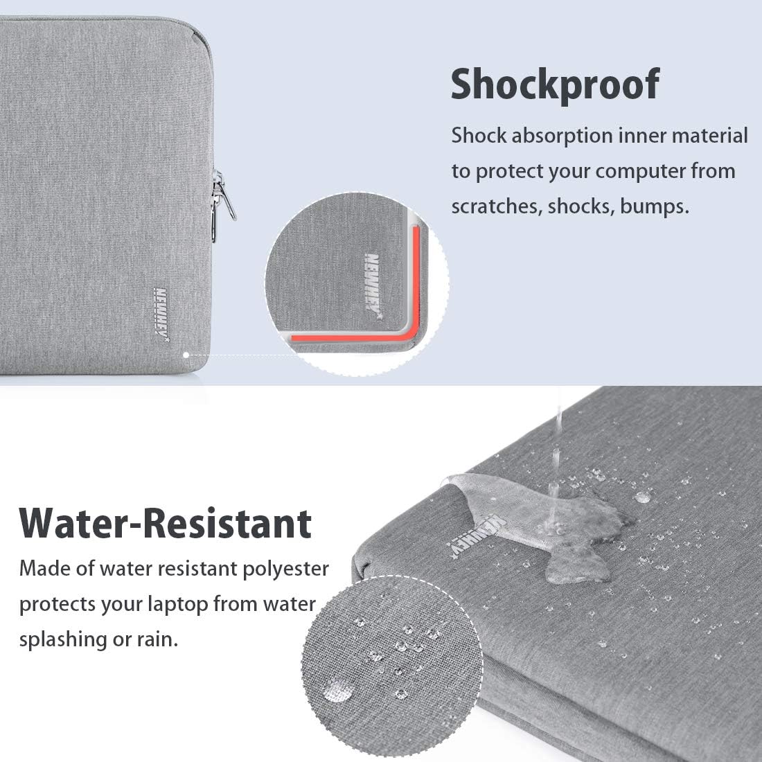 - GUTE SCHUTZLEISTUNG: Die NEWHEY Laptop Hülle verfügt über eine Stossdämpfung an den unteren Kanten und eine weiche 3D-Innenpolsterung, um Ihren Laptop um 360 ° vor Stürzen, Stössen und Kratzern zu schützen. Eine wasserabweisende Polsterschicht