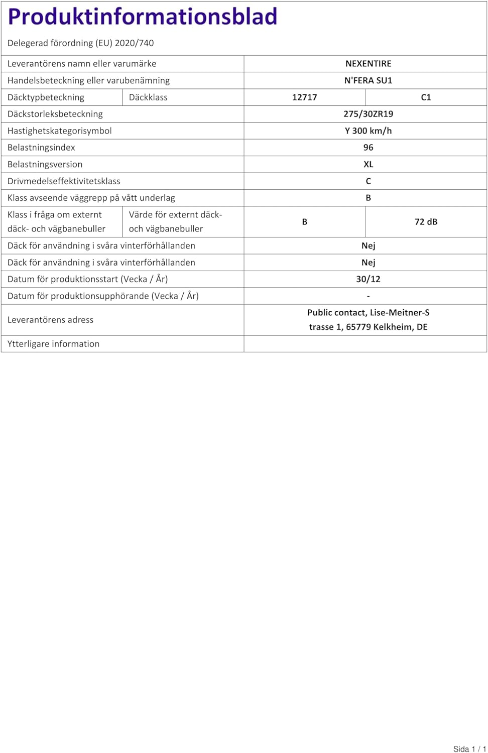 Variante: 275/30ZR19 96Y XL