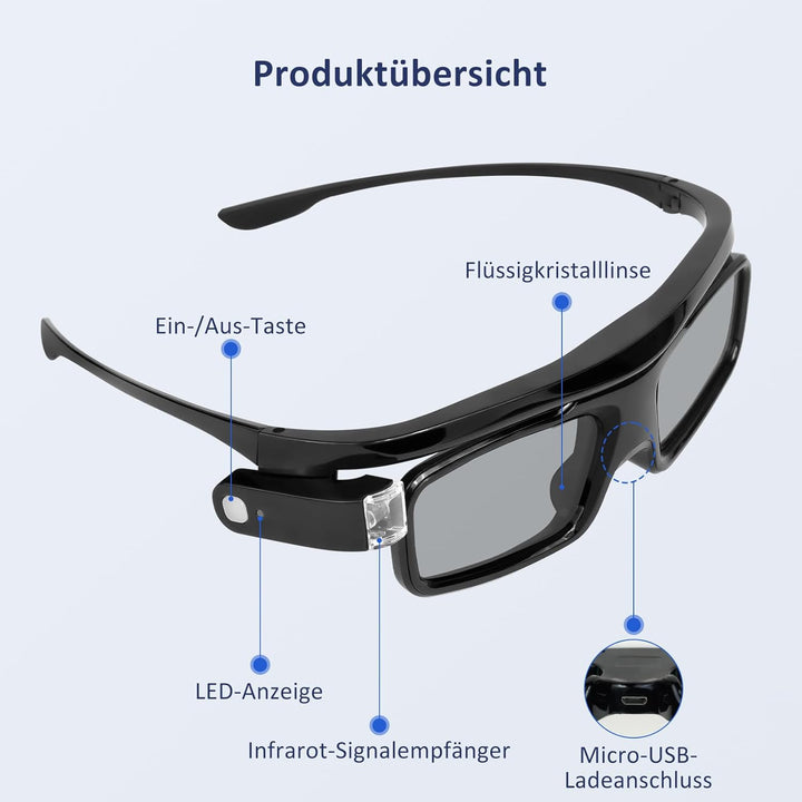 - 【Herausragende Funktionen】Entfesseln Sie ein immersives 3D-Erlebnis im eigenen Zuhause mit unseren DLP-Link 3D-Brillen. Mit modernster Aktiv-Shutter-Technologie, einer blitzschnellen Bildwiederholfrequenz von 144 Hz und HD-Klarheit geniessen Sie