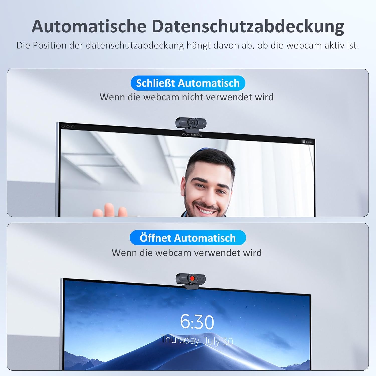 - 【Automatische Elektrische Sichtschutzabdeckung】 Ausgestattet mit einer elektronischen Sichtschutzabdeckung wurde die NexiGo HelloCam Webkamera entwickelt, um Ihre Privatsphäre zu wahren. Die Sichtschutzabdeckung wird automatisch geöffnet, wenn Sie
