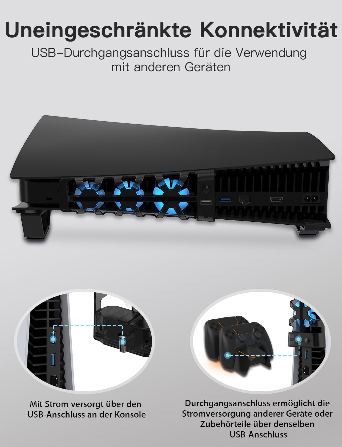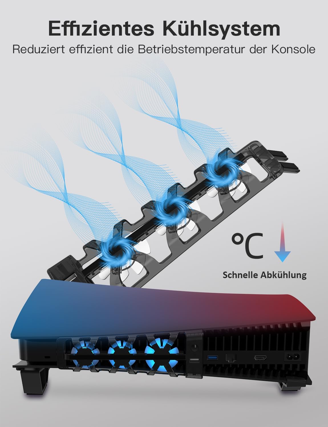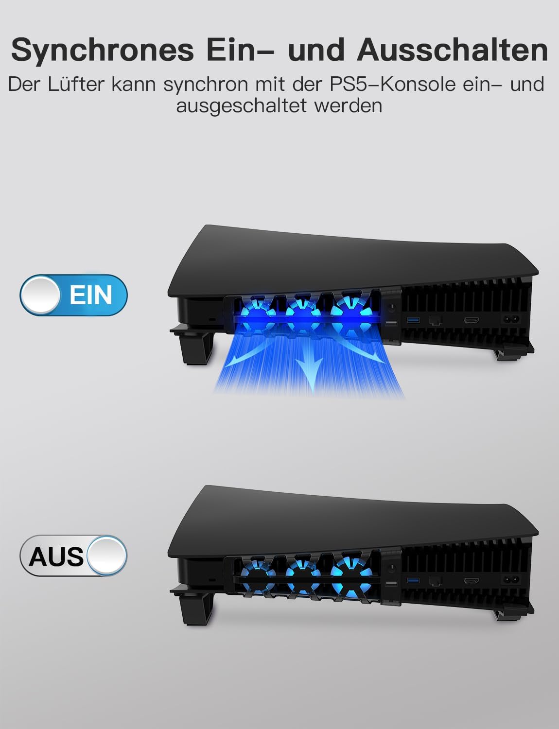 - 【Leicht zu Installieren】PS5 horizontaler Ständer ist die perfekte Alternative zur traditionellen vertikalen Ausrichtung. Der leichte und kompakte Lüfter passt perfekt zur PS5-Konsole und nimmt keinen zusätzlichen Platz ein. Beide sind einfach zu