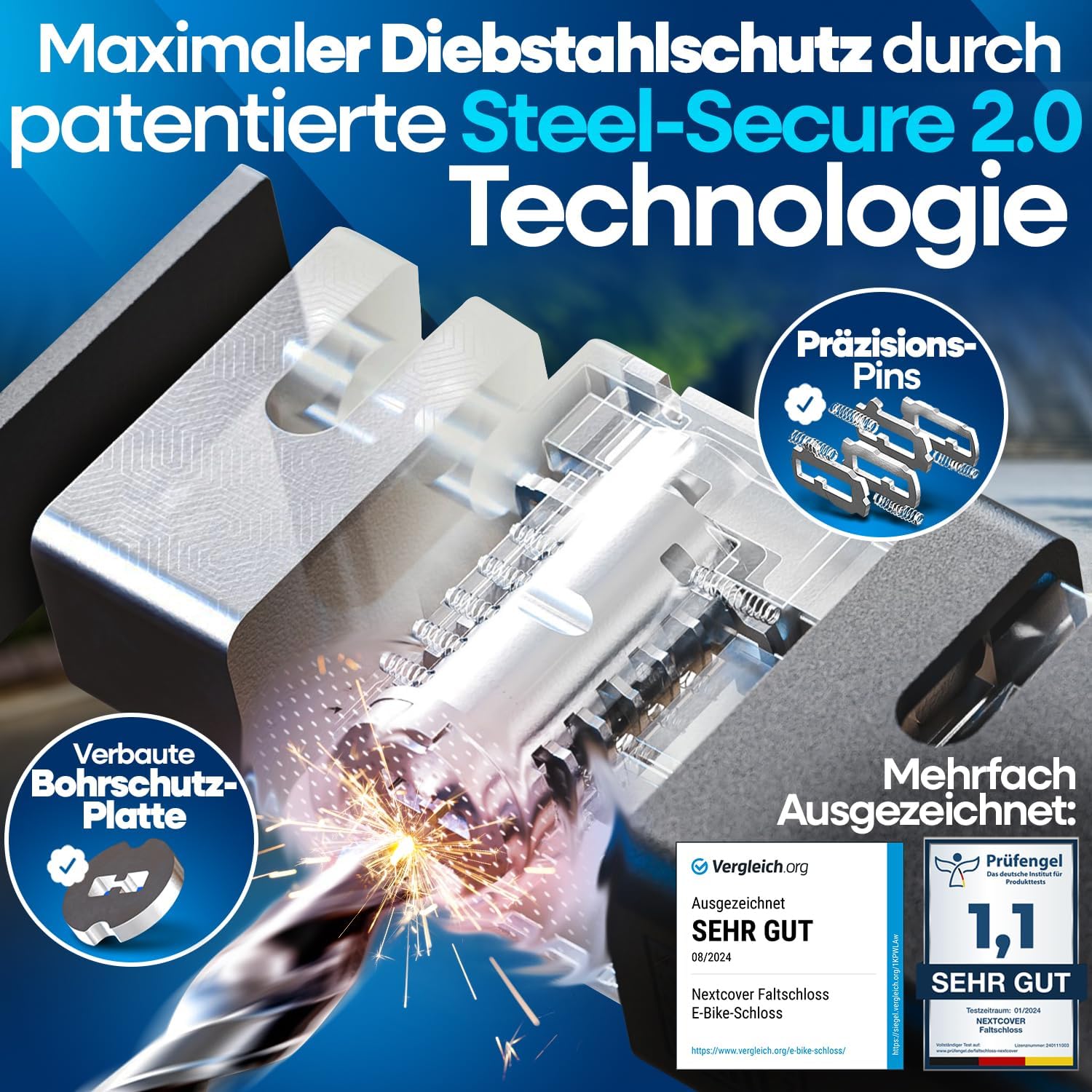 - MAXIMALER DIEBSTAHLSCHUTZ - Modernste Steel Secure Technologie & die Bohrschutzplatte an unserem eigens entwickelten Faltschloss verhindern sein Aufknacken oder Aufbohren & bieten dir höchste Sicherheit.