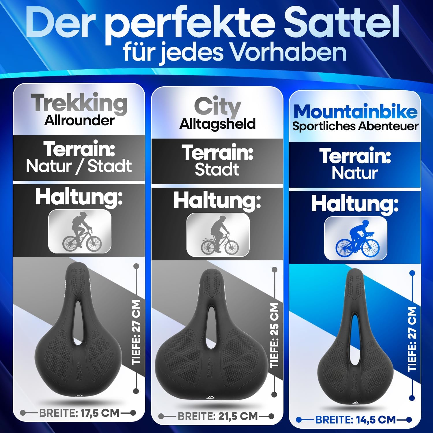 - ✅ FÜR JEDE HERAUSFORDERUNG - Ganz gleich ob in der Stadt, auf langen Touren oder in den Bergen - Wir haben für jede Umgebung den perfekten Sattel: Wähle zwischen City, Trekking & MTB Sattel.