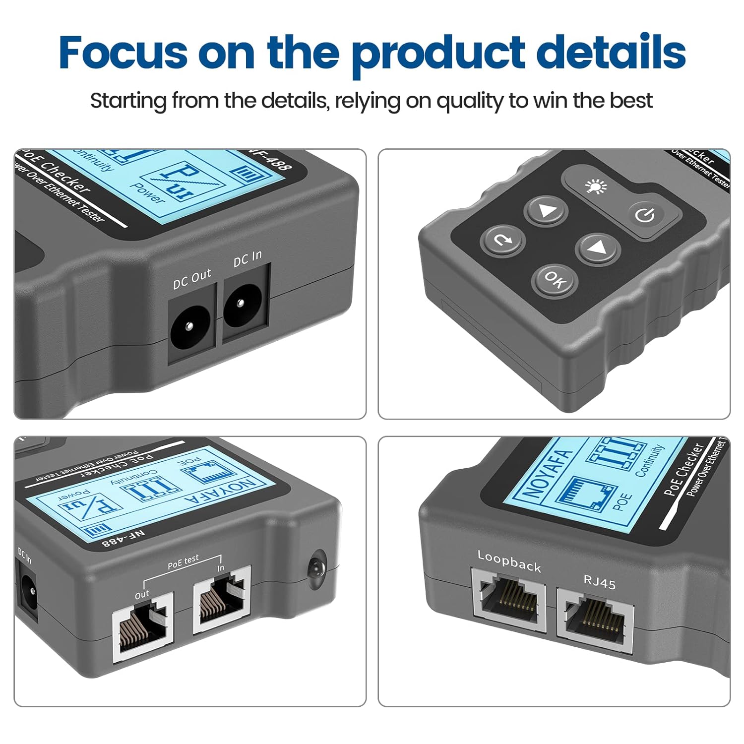 - [Wir helfen Ihnen] Der Ethernet-Tester ist ergonomisch gestaltet. Das gebogene Design auf beiden Seiten des PoE-Prüfers ermöglicht einen besseren Griff während der Benutzung und ist weniger wahrscheinlich abzurutschen. Sehr freundlich! Ihre