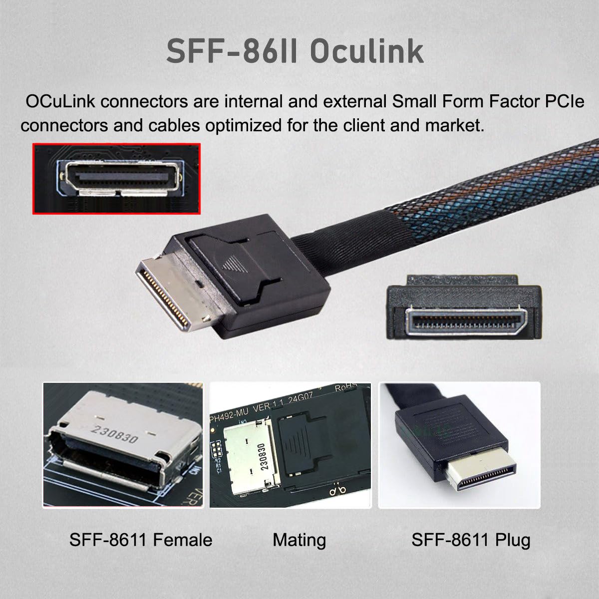 - Dieses 15 cm lange Kabel erweitert das 2280 M-Key-System um eine SFF-8612 Oculink-Buchsenschnittstelle. Oculink ist die nächste Generation von schnellen internen und externen E/A-Anschlüssen für Server, kompatibel mit T10/SAS-4 24 Gbit/s, SFF-8611,