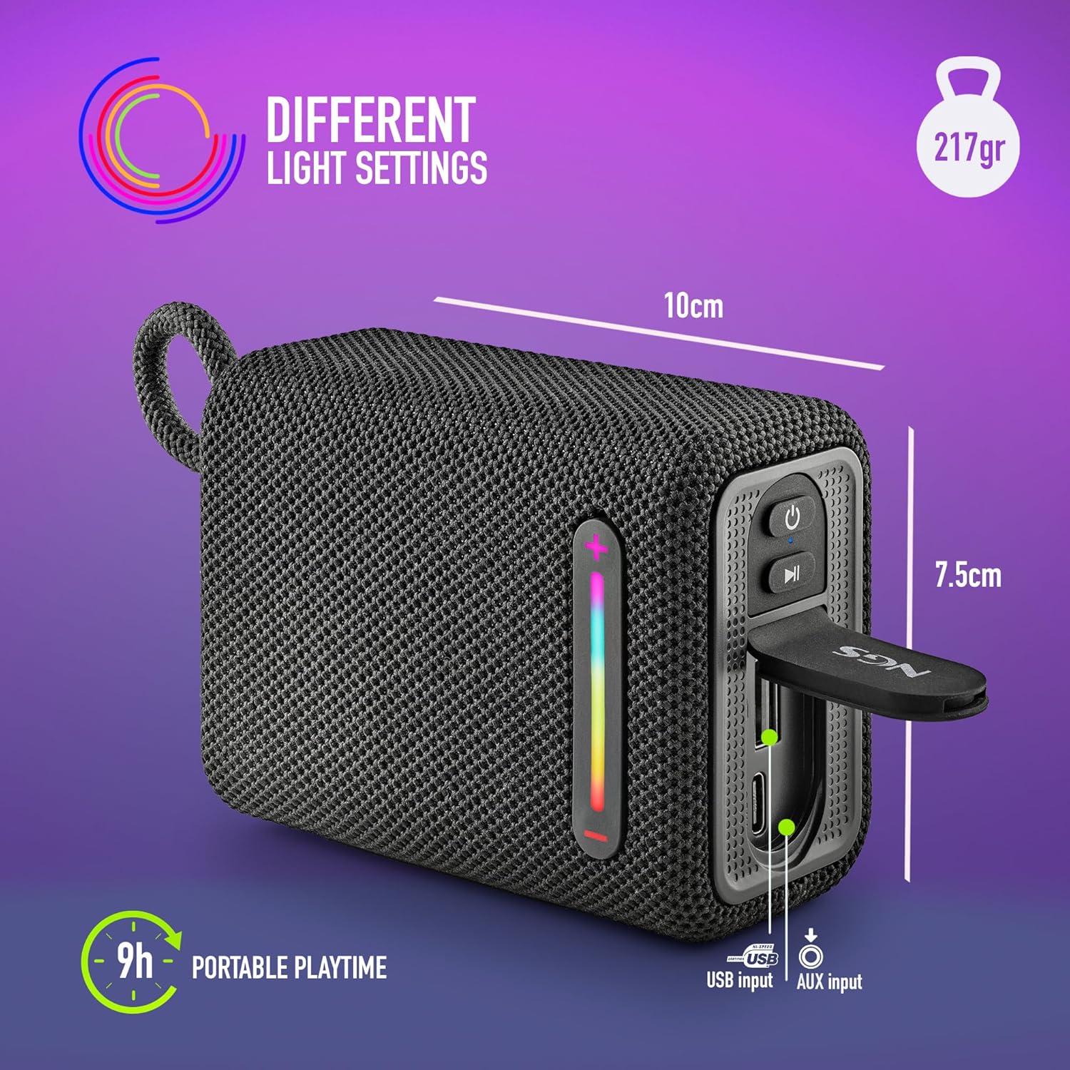 - Robuste Haltbarkeit und Stil: Der Lautsprecher präsentiert ein robustes Design mit strapazierfähigem Stoffmaterial, was Langlebigkeit und Widerstandsfähigkeit gegenüber den Bedingungen des täglichen Gebrauchs garantiert.