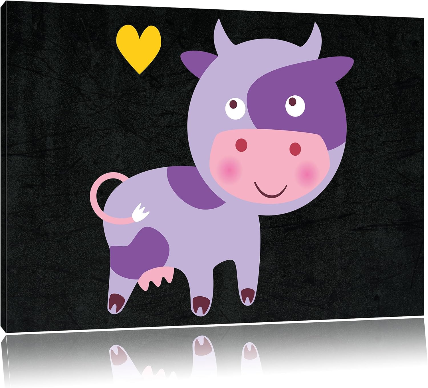 Niedliche Kuh schwarz, Format: 100x70 auf Leinwand, XXL riesige Bilder fertig gerahmt mit Keilrahmen