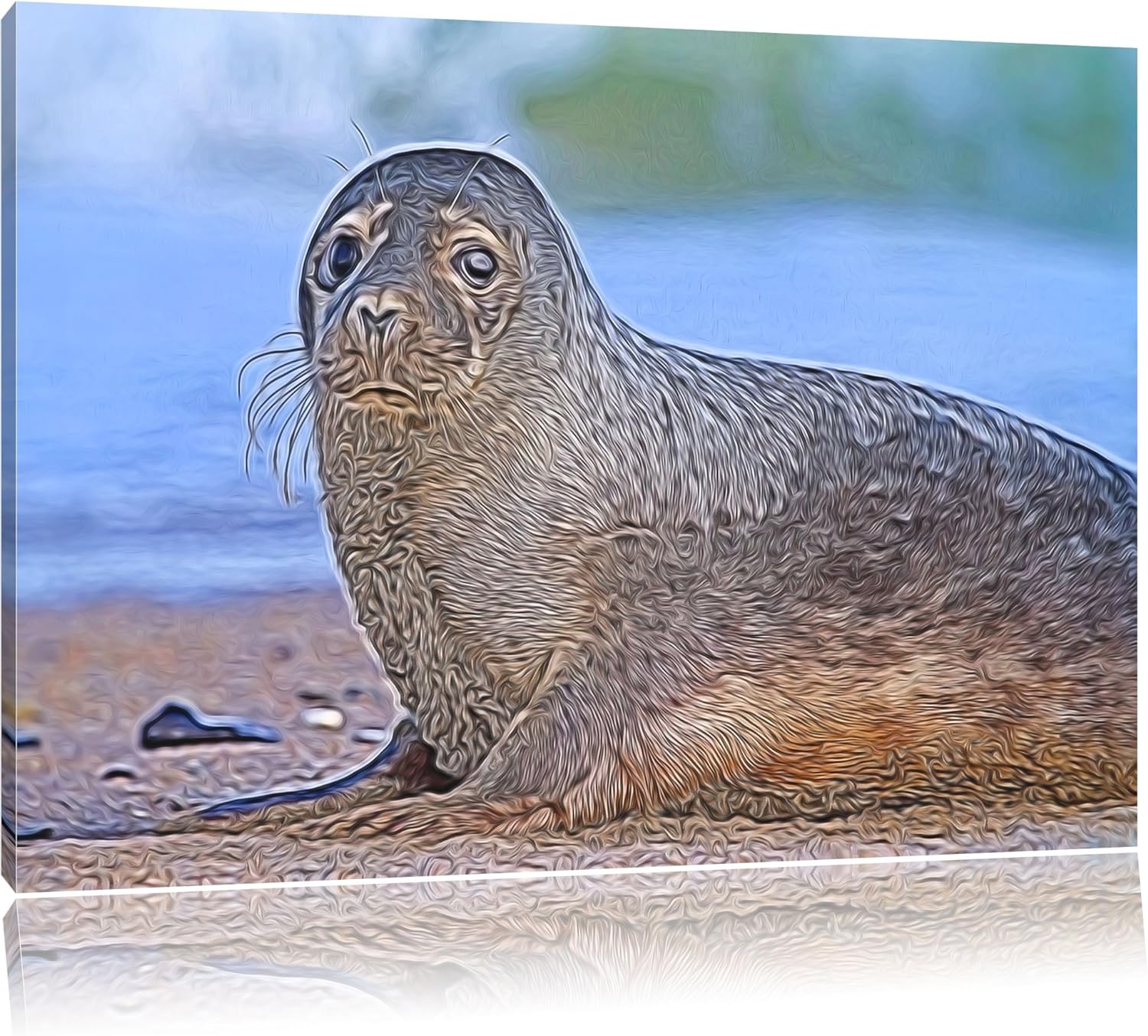 niedliche Robbe am Strand Spezial Format: 100x70 cm auf Leinwand, XXL riesige Bilder fertig gerahmt