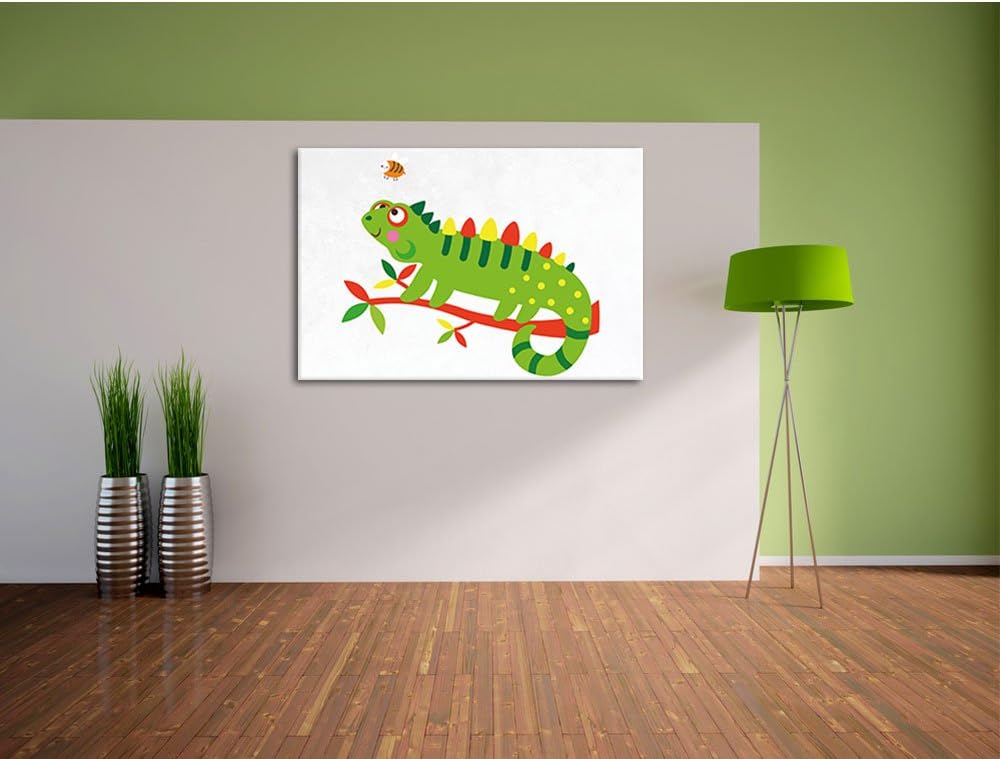 Niedliches Chamäleon weiss, Format: 100x70 auf Leinwand, XXL riesige Bilder fertig gerahmt mit Keilr
