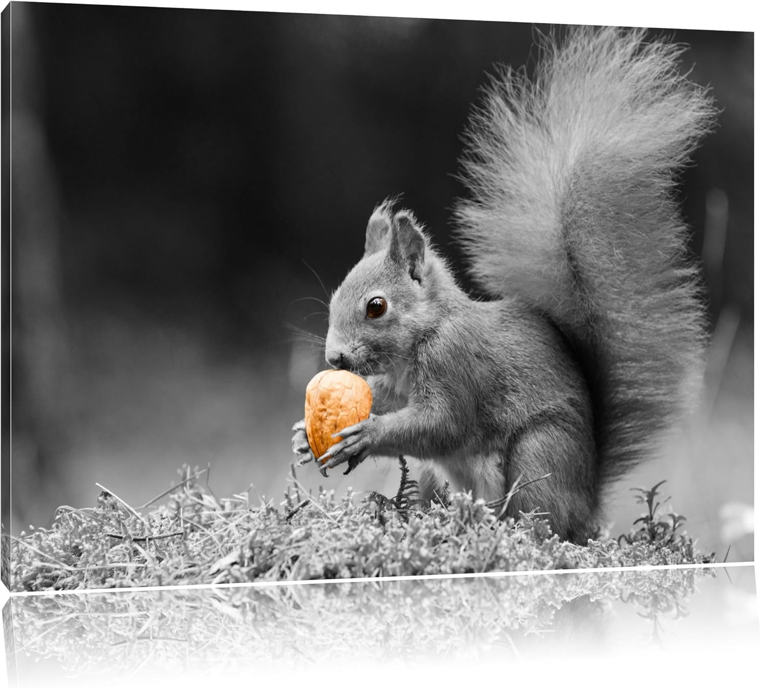 niedliches Eichhörnchen mit Nuss schwarz/weiss Format: 100x70 auf Leinwand, XXL riesige Bilder ferti