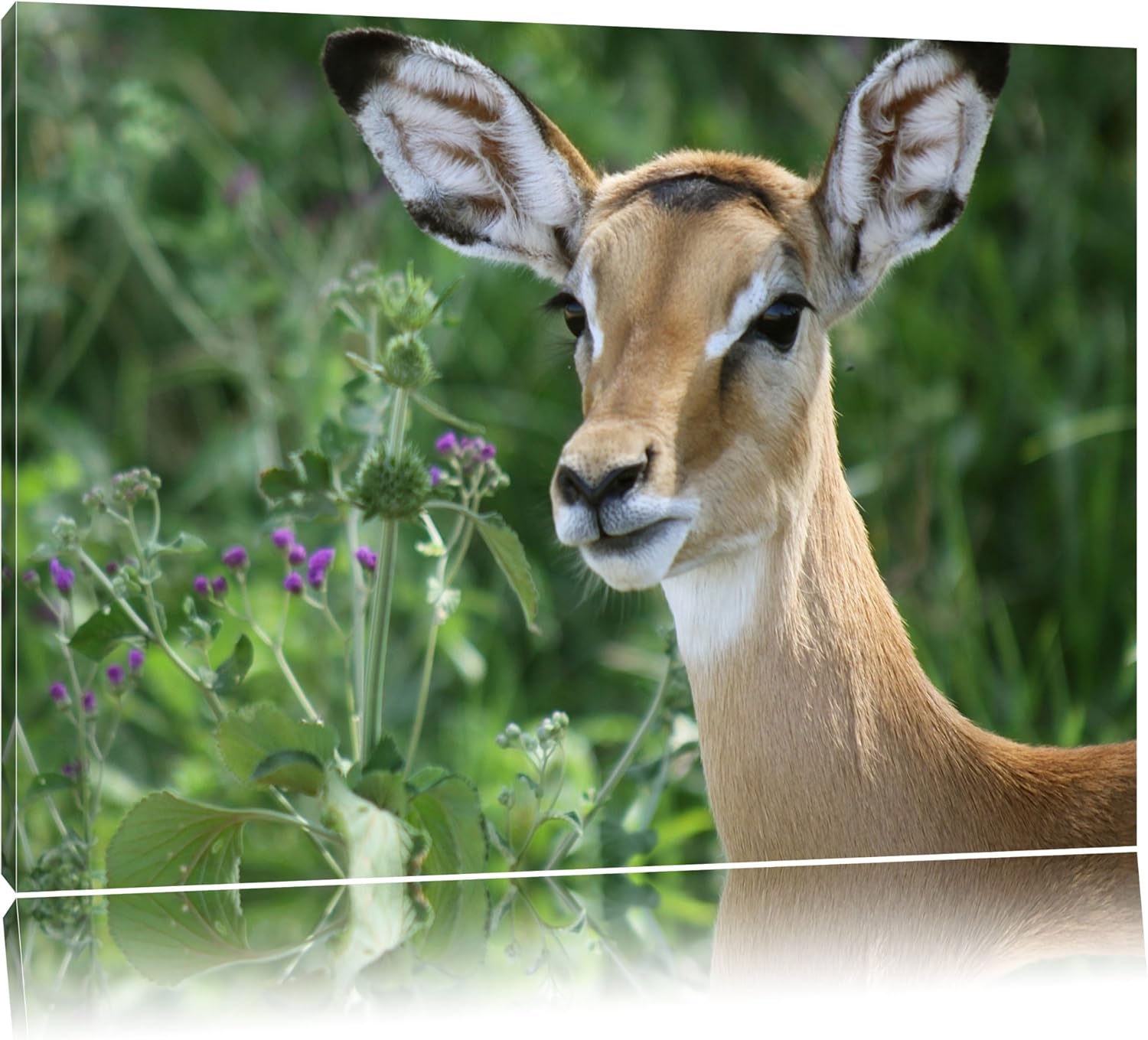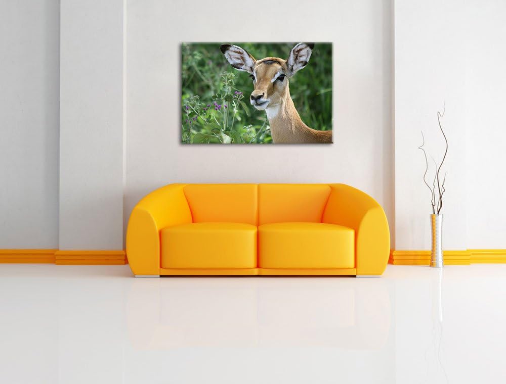 niedliches Reh vor hoher Wiese Leinwand, XXL riesige Bilder fertig gerahmt mit Keilrahmen, Kunstdruc