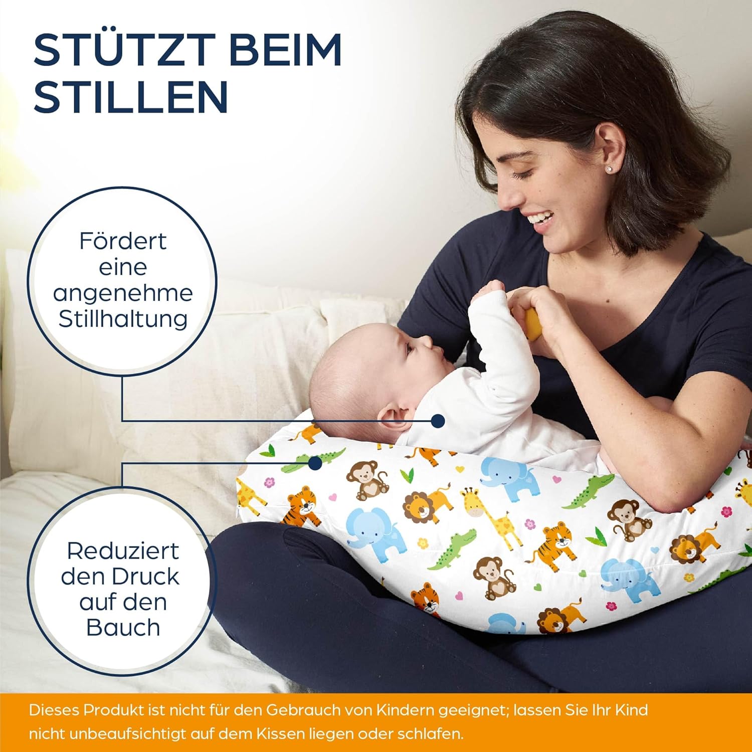 - 100% BAUMWOLLE: Der Stillkissenbezug aus 100% Baumwolle wurde mit einem verdeckten Reissverschluss versehen, um Hautreizungen zu reduzieren und ein Hängenbleiben an der Kleidung zu verhindern. Die Silikon-Polyesterfasern-Füllung ist formstabil und