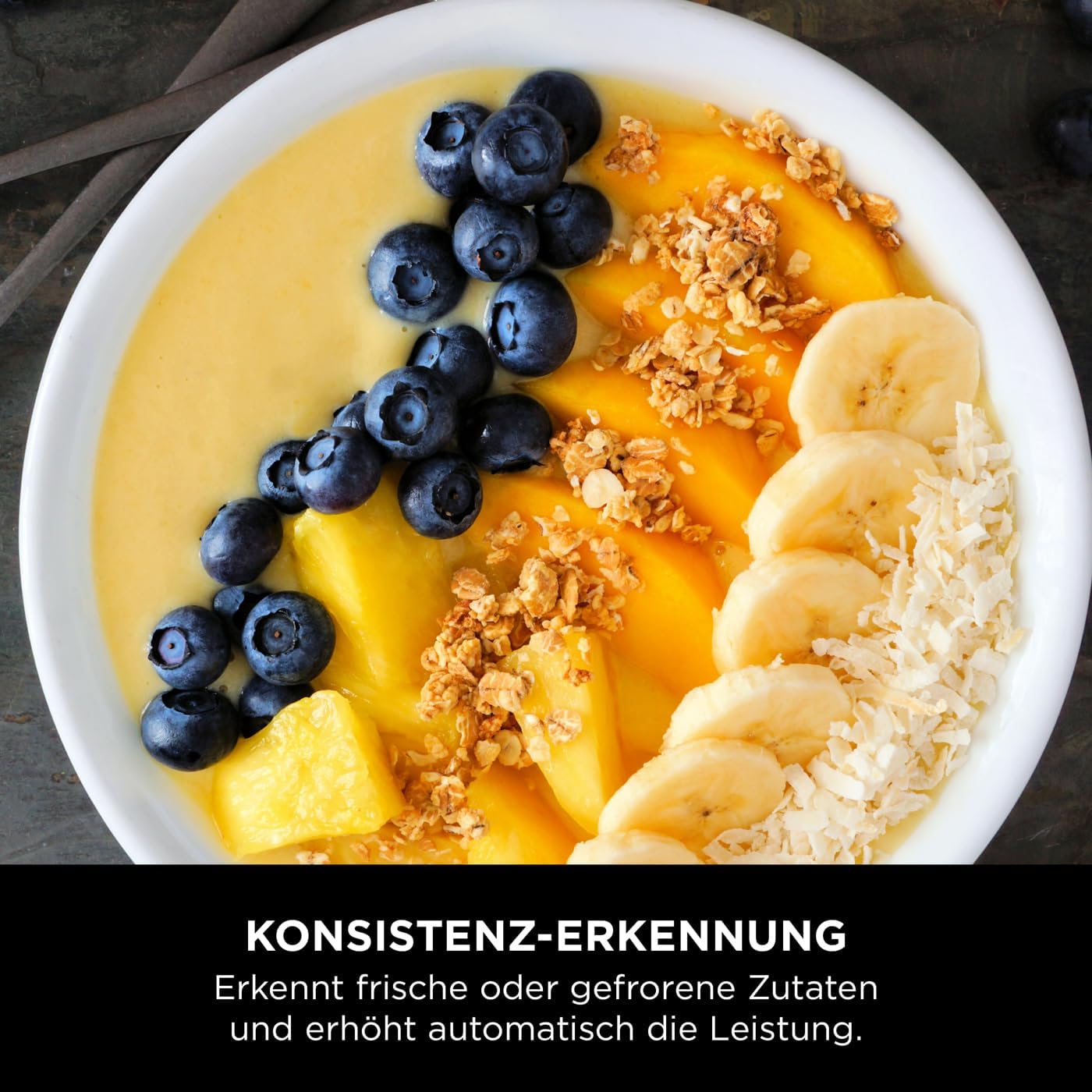 - BLENDSENSE-TECHNOLOGIE: Erkennt die Zutaten, die Portionsgrösse und das Eis und passt dann automatisch die Geschwindigkeit, die Zeit und den Puls für ein perfektes Ergebnis an