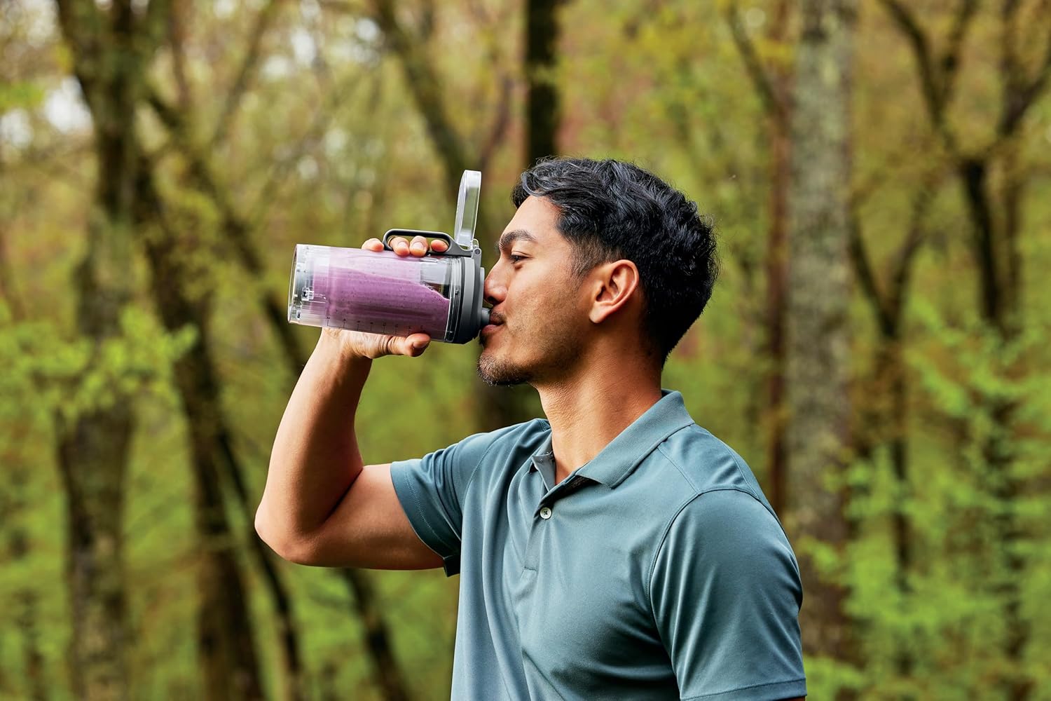 - 570ML MIXBECHER: Mit dem Twist-and-Go-Design können Sie den Becher nach dem Mixen herausnehmen und Smoothies, Shakes und mehr unterwegs geniessen. Inklusive auslaufsicherem Deckel, Tragegriff und Trinköffnung (*490 ml maximales Fassungsvermögen)