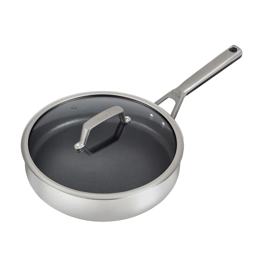 - BEINHALTET: Ninja Foodi 26cm Bratpfanne mit hitzebeständigem Glasdeckel. Spülmaschinenfest. Gewicht 2,1 kg. Farbe: Edelstahl