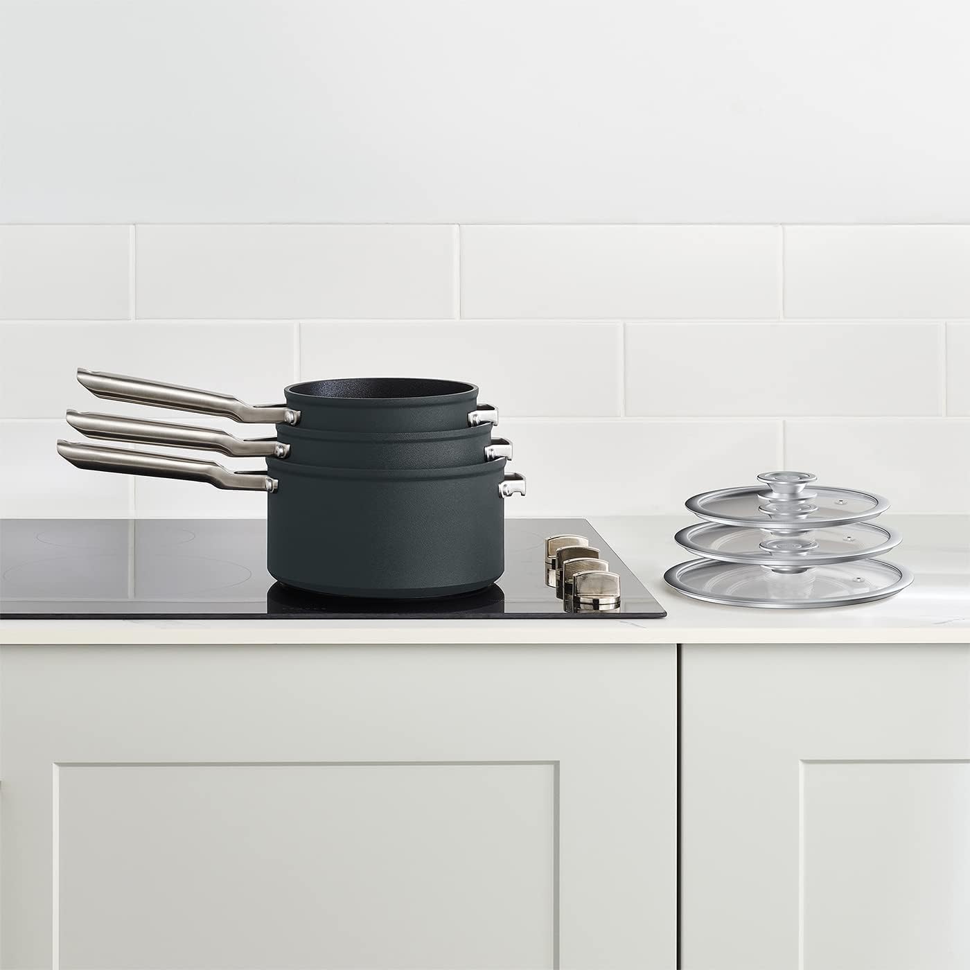 - GEEIGNET FÜR ALLE HERDARTEN; Kompatibel mit Induktions-, Gas-, Elektro- & Keramikherden; Ofensicher bis 260°C. Kann zusammen mit anderen Pfannen aus der stapelbaren Serie verstaut werden, um Ihr Kochgeschirr sicher aufzubewahren und zu schützen.
