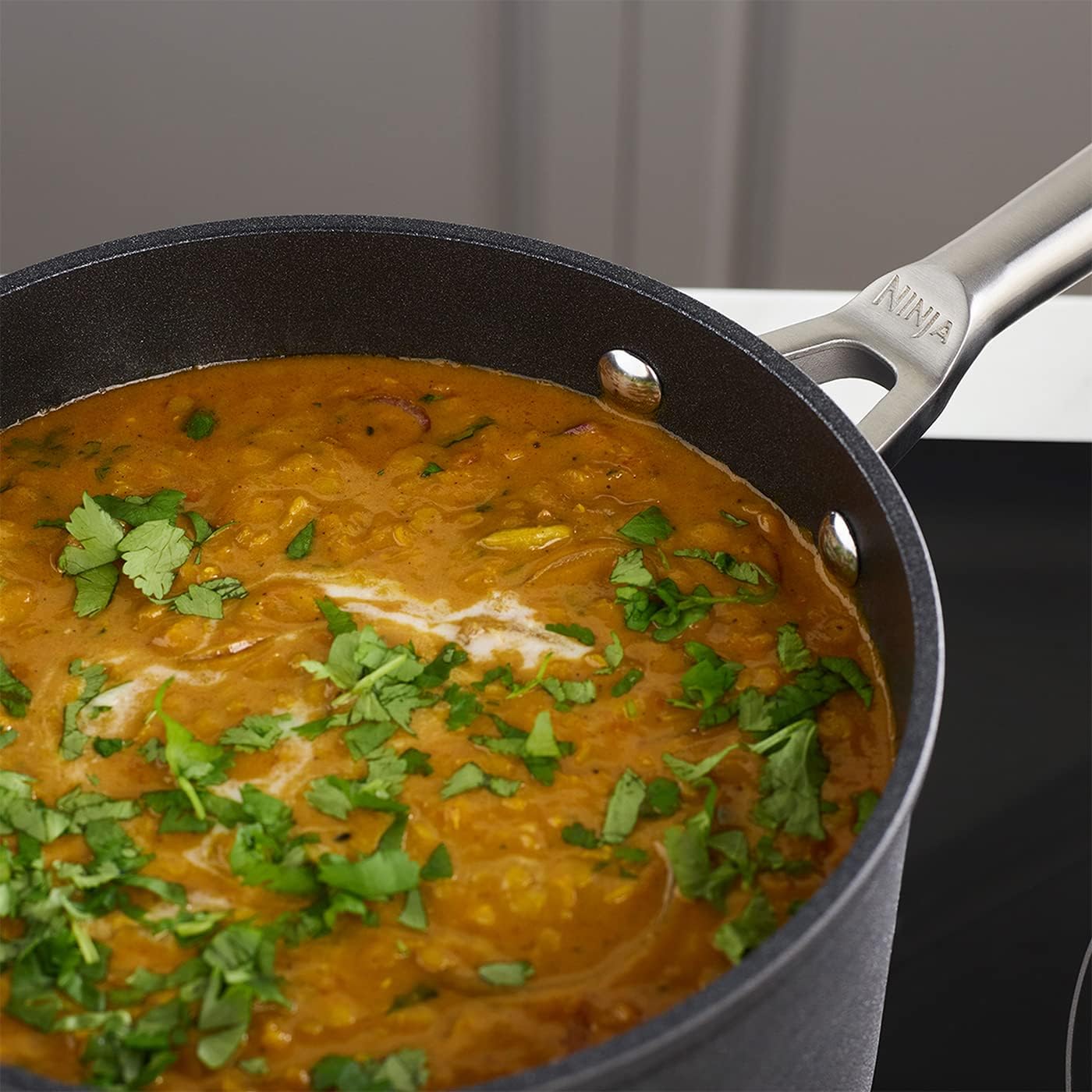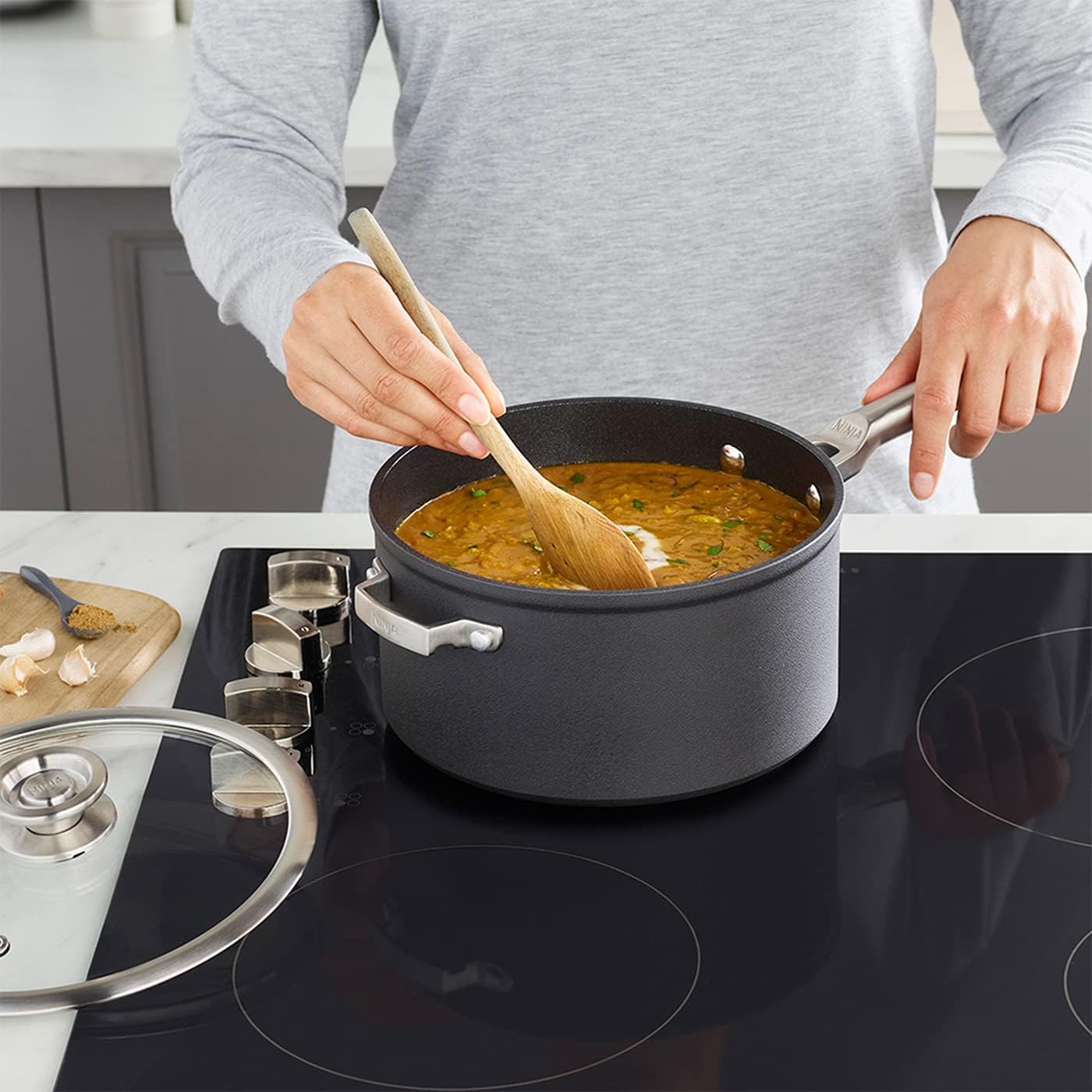 - BEINHALTET: Ninja Foodi 20cm Kochtopf mit Deckel, spülmaschinenfest. Gewicht: 1,52 kg. Farbe: Grau