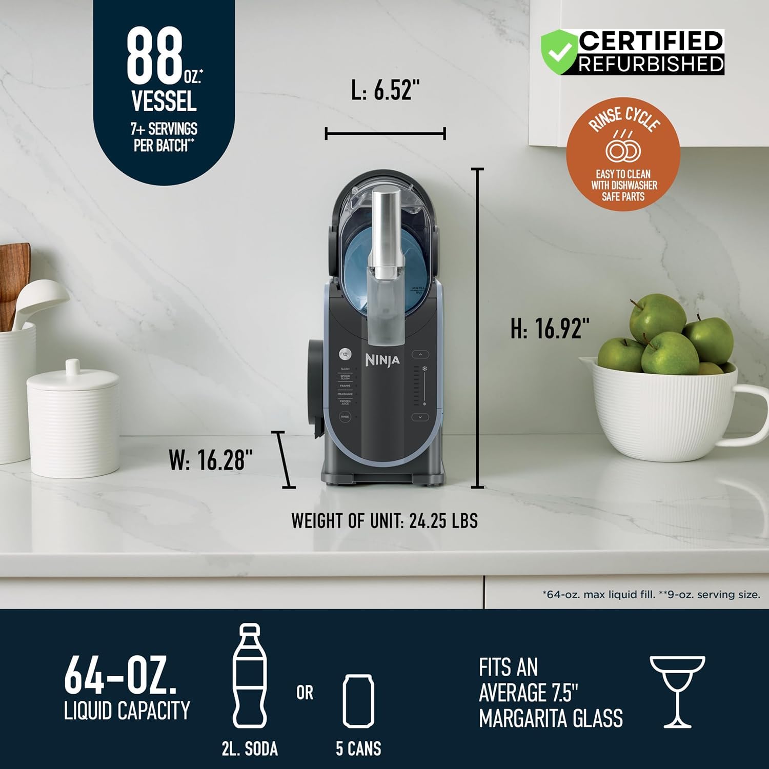 - Whisperchill Kompressor: Hält Ihre Slushed Leckereien ruhig auf der perfekten Temperatur und Textur für bis zu 12 Stunden.