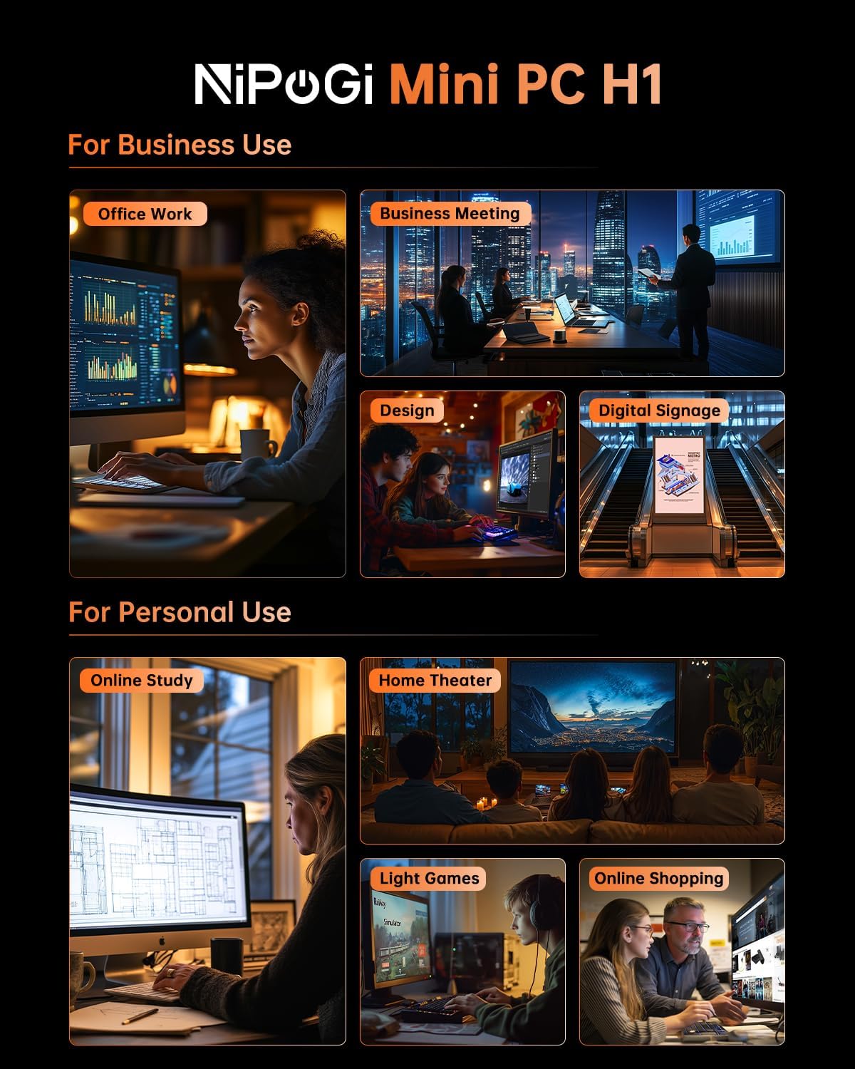 - Kompaktes Design, sicherer Service: Mit den Massen von nur 12,9 x 12,9 x 5,1 cm bietet der NiPoGi H1 eine VESA-Befestigung, wodurch er leicht auf der Rückseite eines Monitors oder auf einem Schreibtisch installiert werden kann, was Ihnen eine