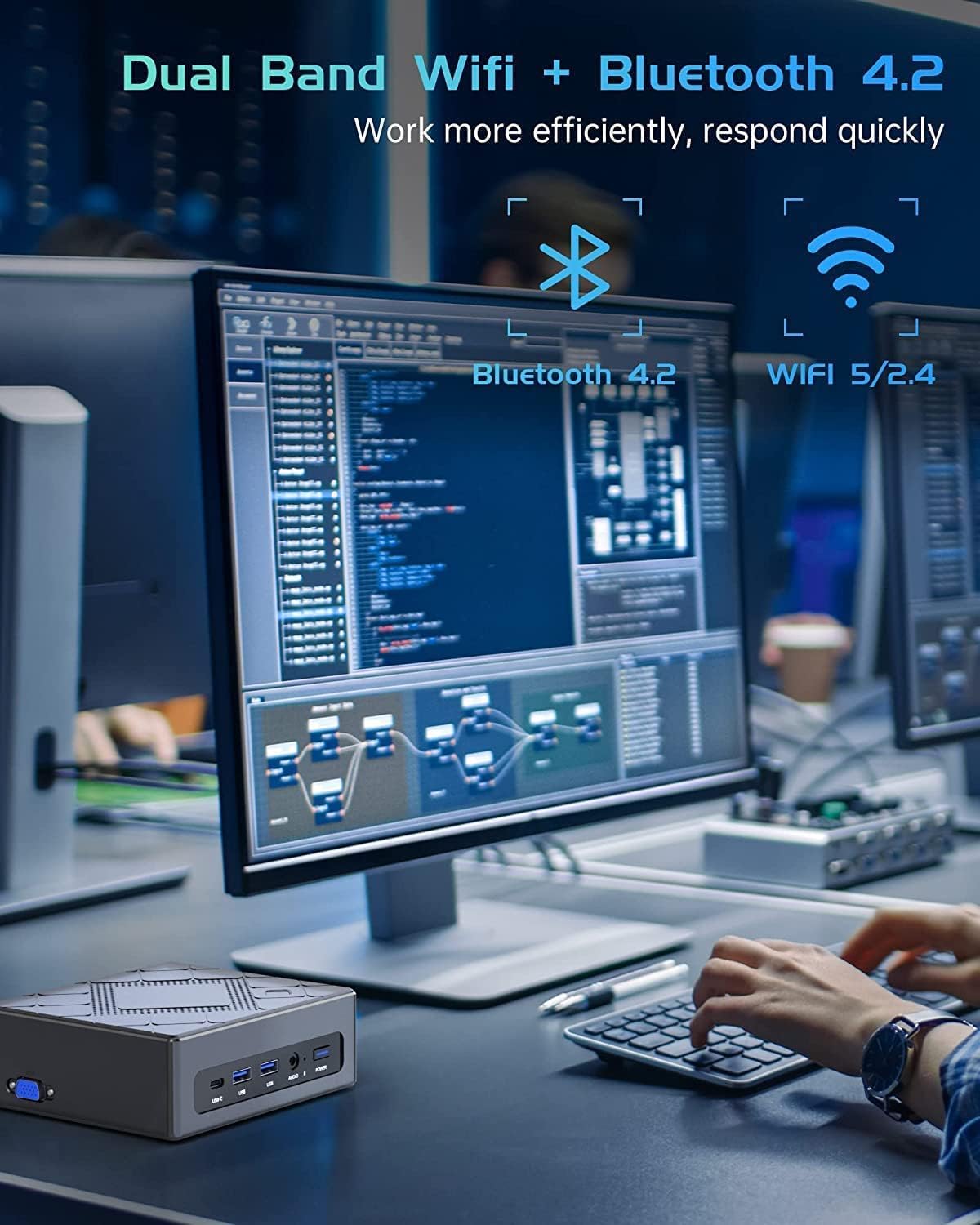 - 【Stabile Verbindung, schnelle Übertragung】Mini-Computer unterstützen 2.4G/5G WiFi und Bluetooth 4.2, um ein stabiles Betriebserlebnis zu bieten, verfügbar zum Verbinden verschiedener drahtloser Geräte wie Mäuse, Tastaturen, Kopfhörer usw.,