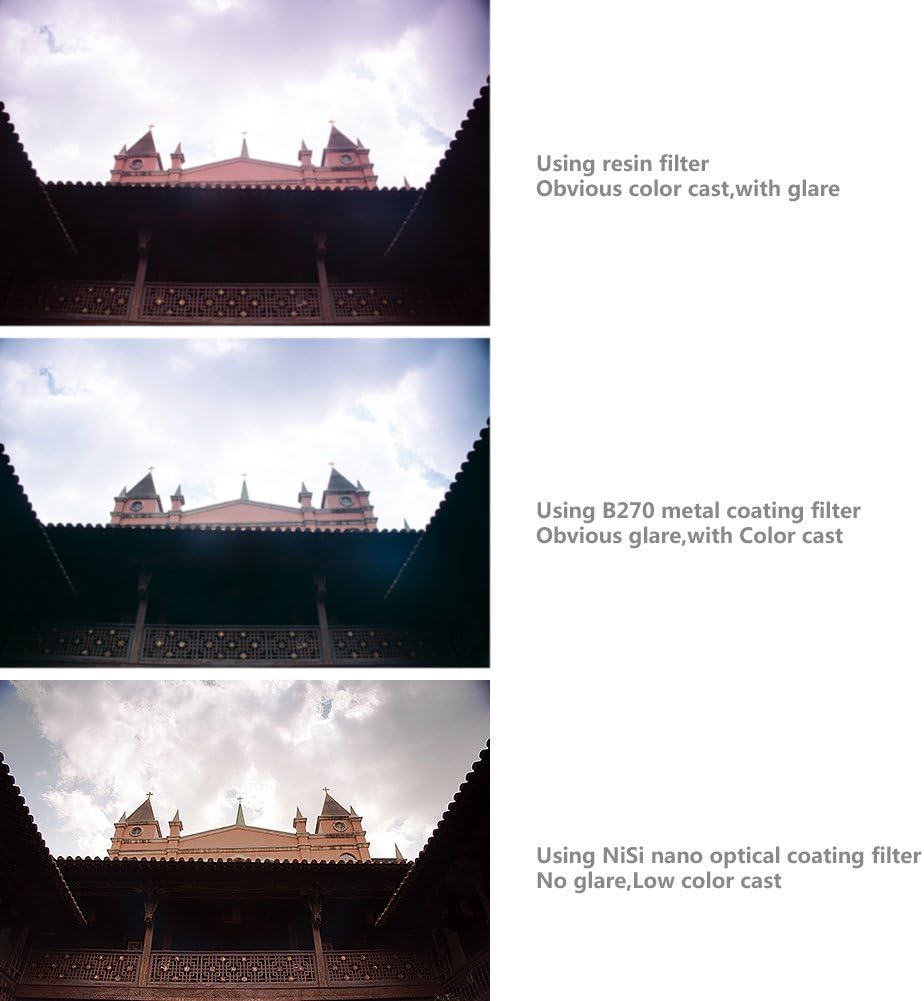 - hohe Farbtreue und Kratzfestigkeit, besonders im Vergleich zu den sonst üblichen Resin (Kunststoff) Filtern