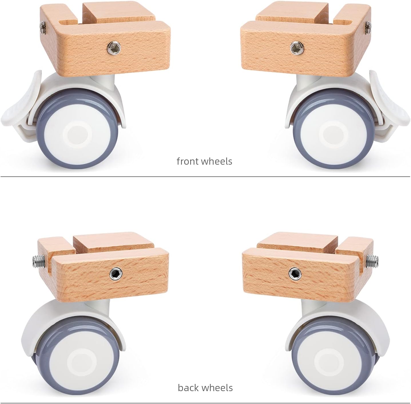 - Einfache Installation – Rillen zwischen Käfig und Universalrad aus und verwenden Sie dann das Werkzeug, das wir zur Befestigung zur Verfügung stellen. Die Vorderräder mit Verriegelung