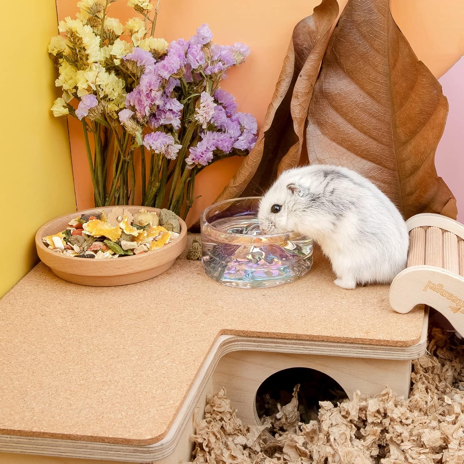 Niteangel Hamster Feeding & Water Bowls- Mount Fuji Series Glass Drinking Bowls for Dwarf Syrian Ham