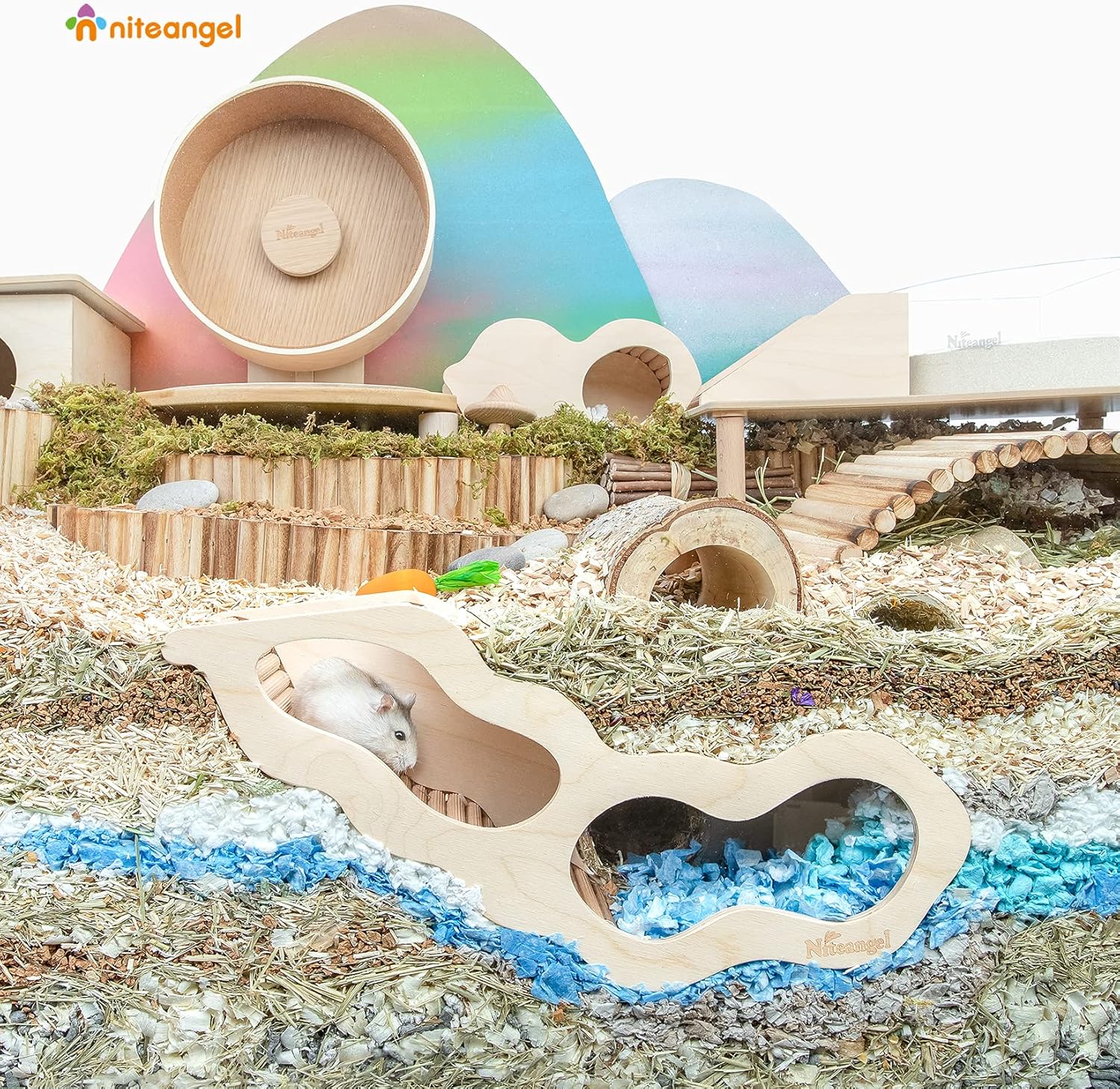 - Handgefertigtes und haustierfreundliches Material - Handgefertigt aus ausgewähltem Birkensperrholz & Buchenstäbchen ohne Nägel, die gesamte Struktur ist stabil und es gibt keine Lücken auf den Kletterleitern des Daches. Jede Ecke dieses Hamsterhauses