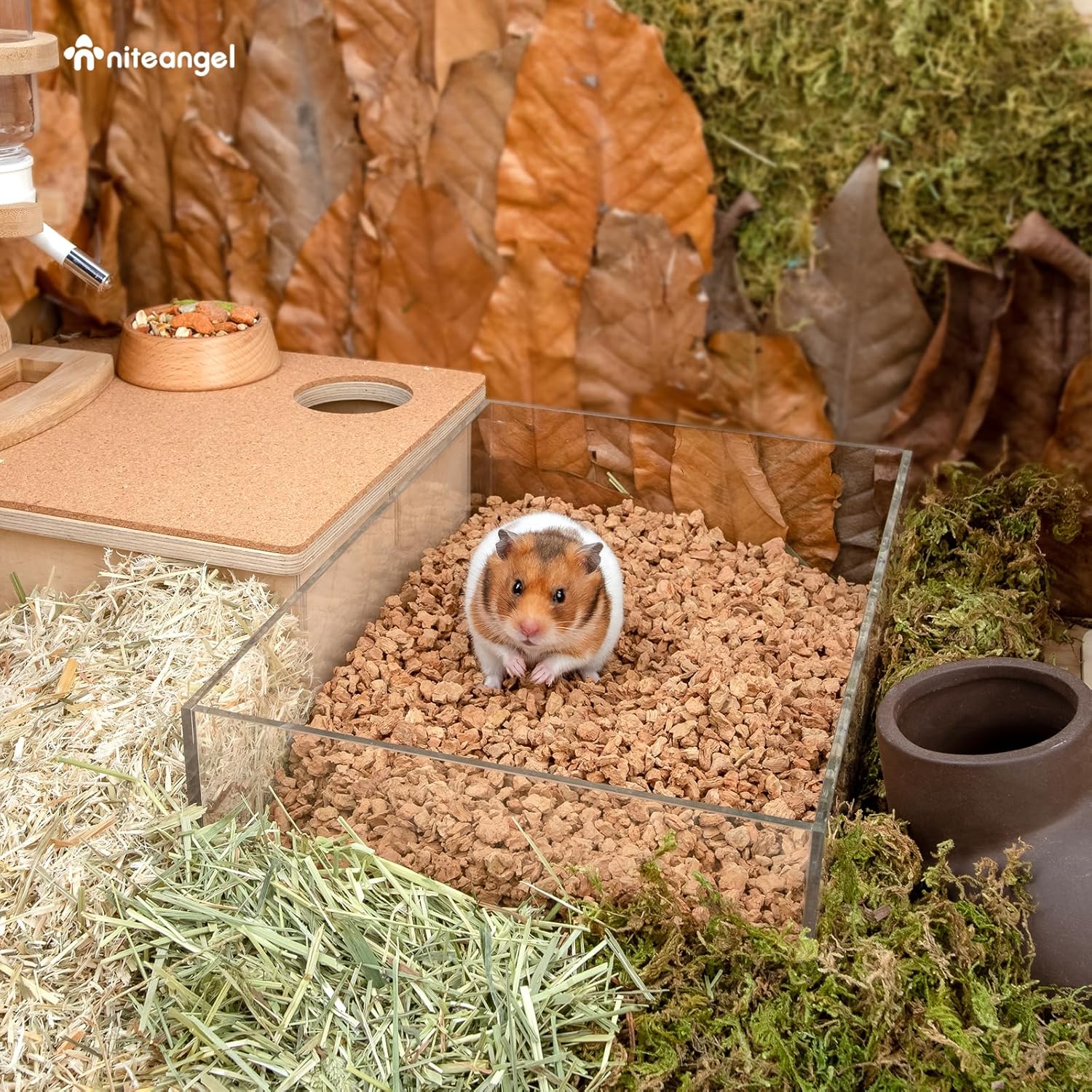 - [Ein gemütliches Versteck für Hamster schaffen] Natürliche Korkgranulatmaterialien ermöglichen es Ihnen, einfach ein komfortables Lebensraumthema für Ihren kleinen pelzigen Freund zu gestalten. Sie können einige Lebensmittel oder Snacks im