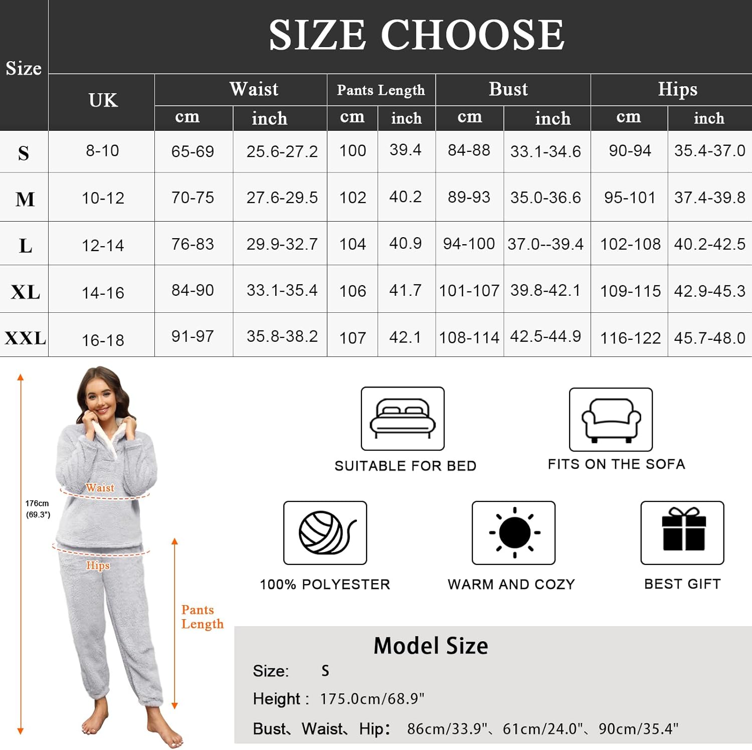 - 【 Wearing 】 Dieses wunderschöne zweiteilige Pyjama-Set enthält wunderschöne Farben und ist sehr warm und bequem.Damen Fleece-Pyjamas eignen sich für Nächte oder Freizeit und faules Tragen.Als Haushaltskleidung, Nachtwäsche, Sportbekleidung,