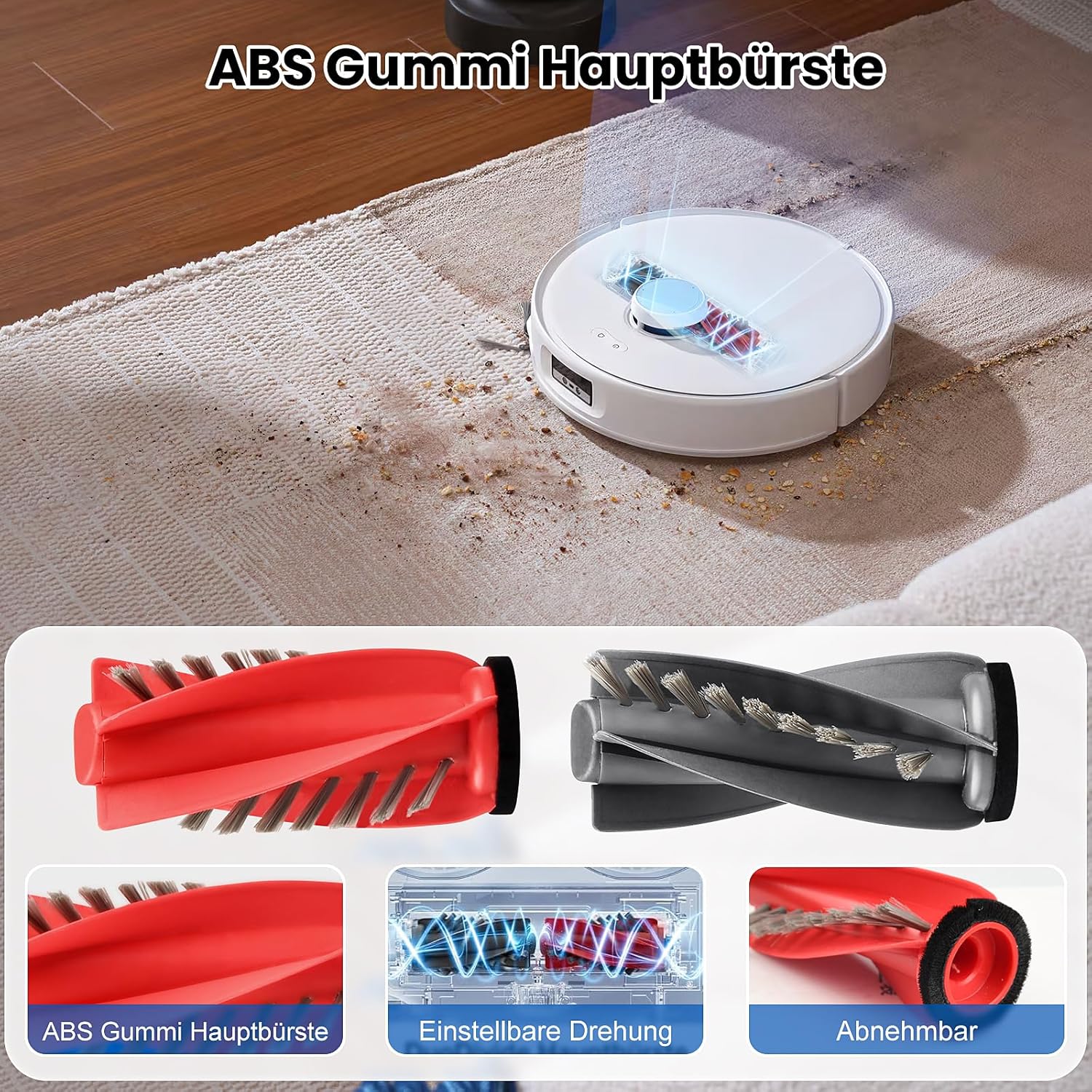 - 🏆【Hauptbürste und Seitenbürste】Ausgewählte, hochwertige ABS-Gummi-Hauptbürste kann Schmutz effektiv reinigen und lässt sich präzise in den Installationsschlitz einrasten, ohne dass sich Haare verheddern. Die Seitenbürste kann tief in Ecken