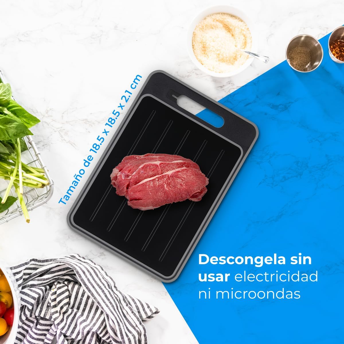 - Hauptmerkmale: Diese Auftauplatte für Lebensmittel besteht aus Aluminium und verfügt über 4 Eckenschutz und eine Silikonbürste für eine einfache Reinigung. Ausserdem ist eine Silikonschnur zum einfachen Aufhängen enthalten. Das Gewicht beträgt ca.