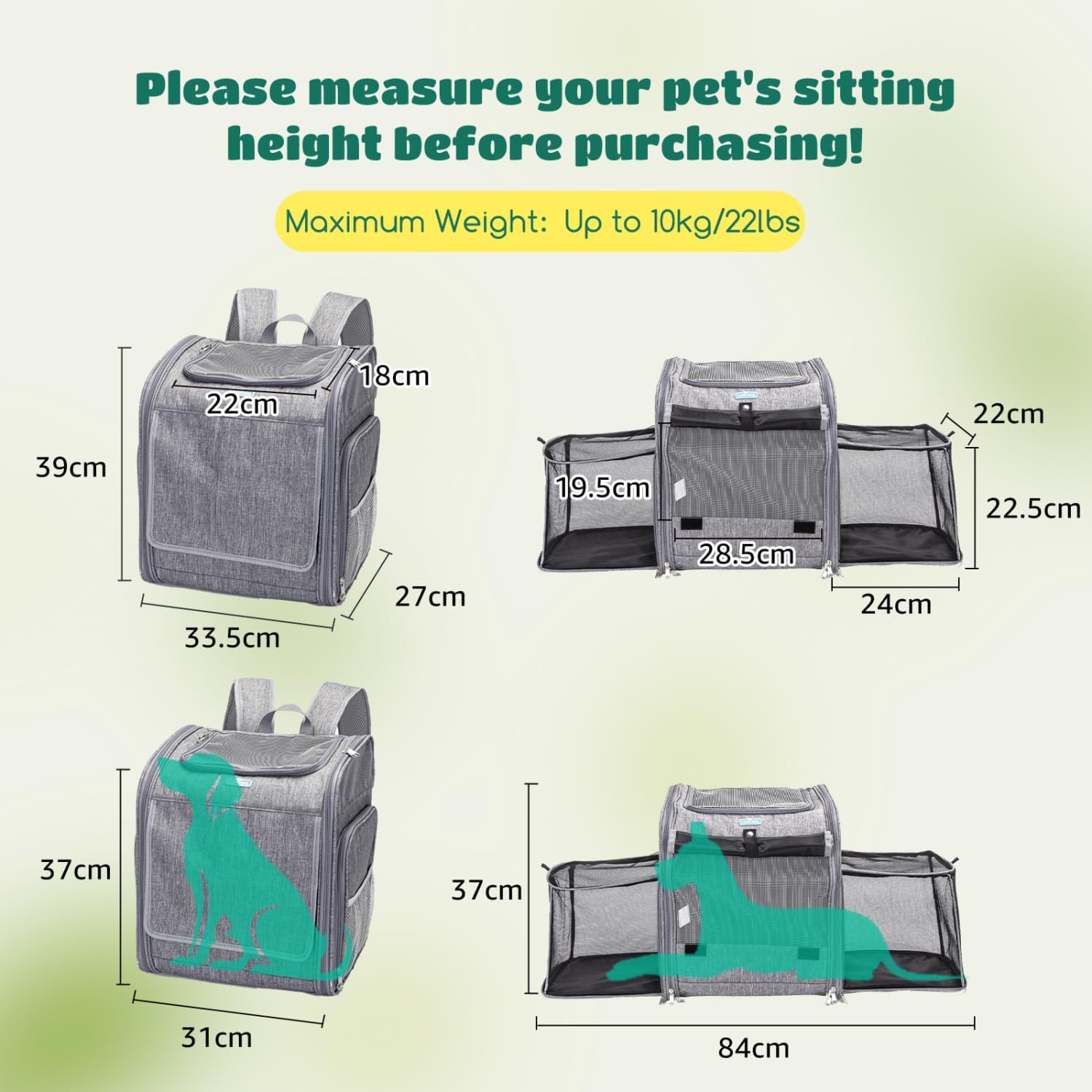 - 【Sicher und Langlebig】 Dieser katzen-und hunderucksack hergestellt aus hochwertigem Polyestergewebe und kratzfestem Netz für eine starke Struktur, die für Haustiere sicher ist, und 1 erweiterbar weiche Matte, damit es Ihr Haustier während der