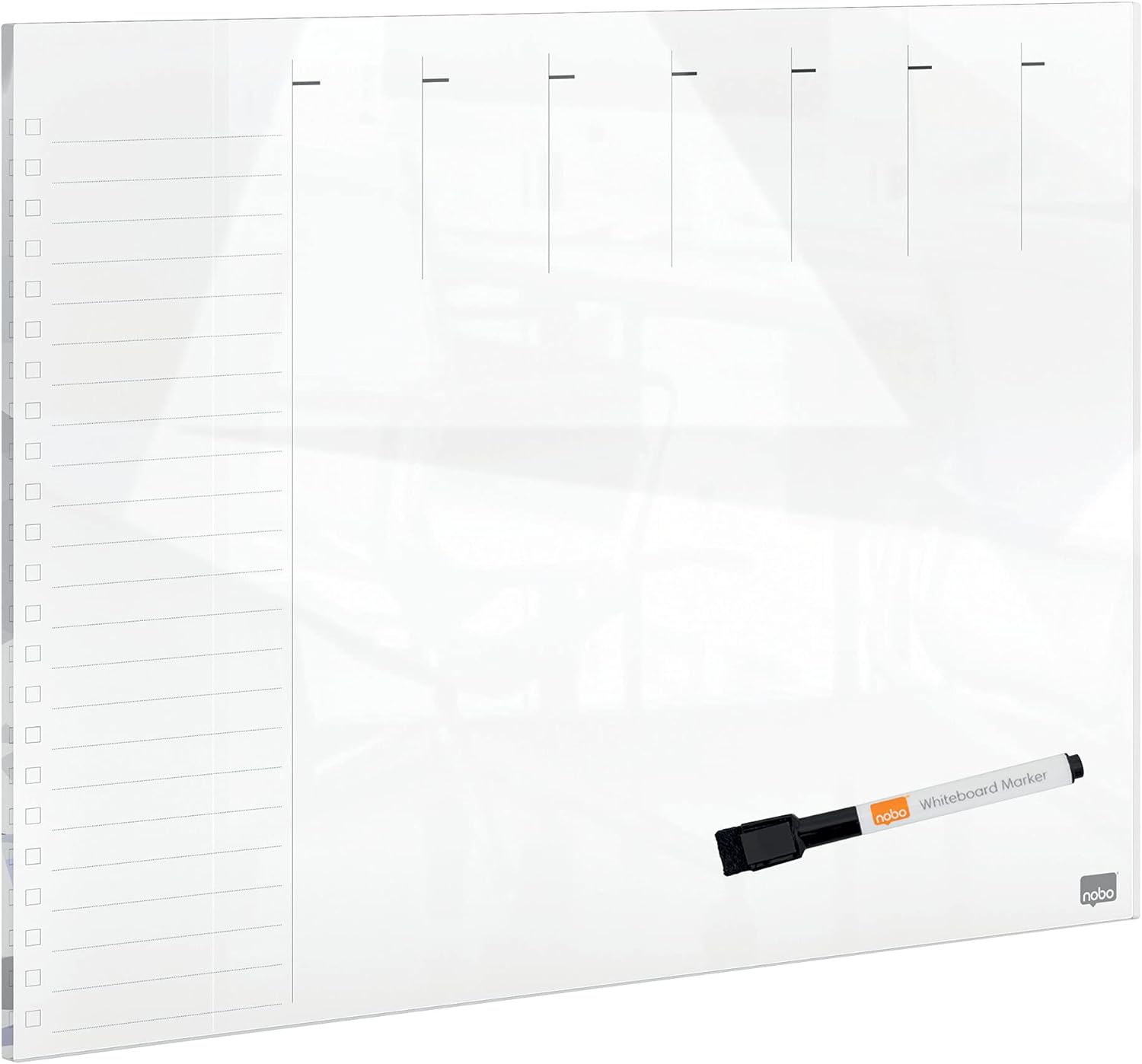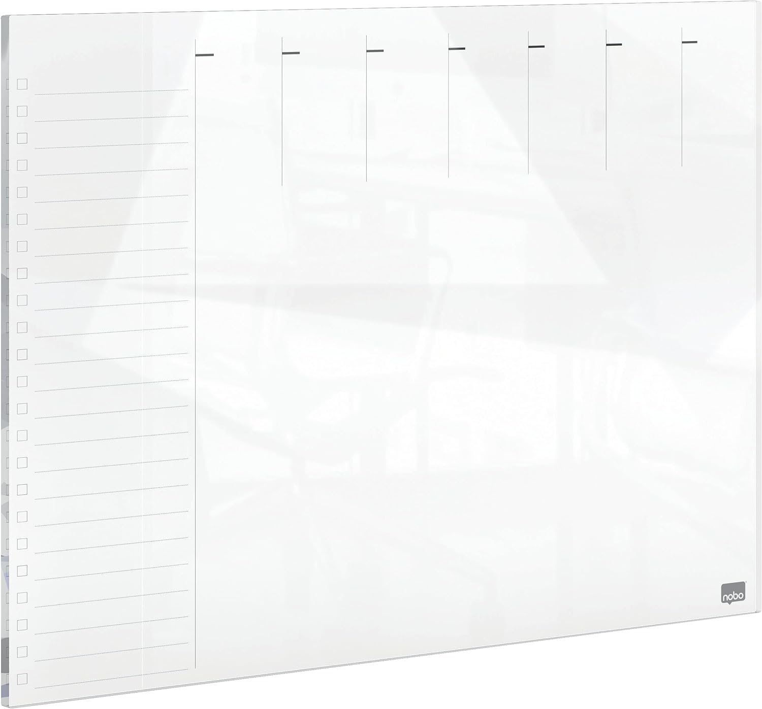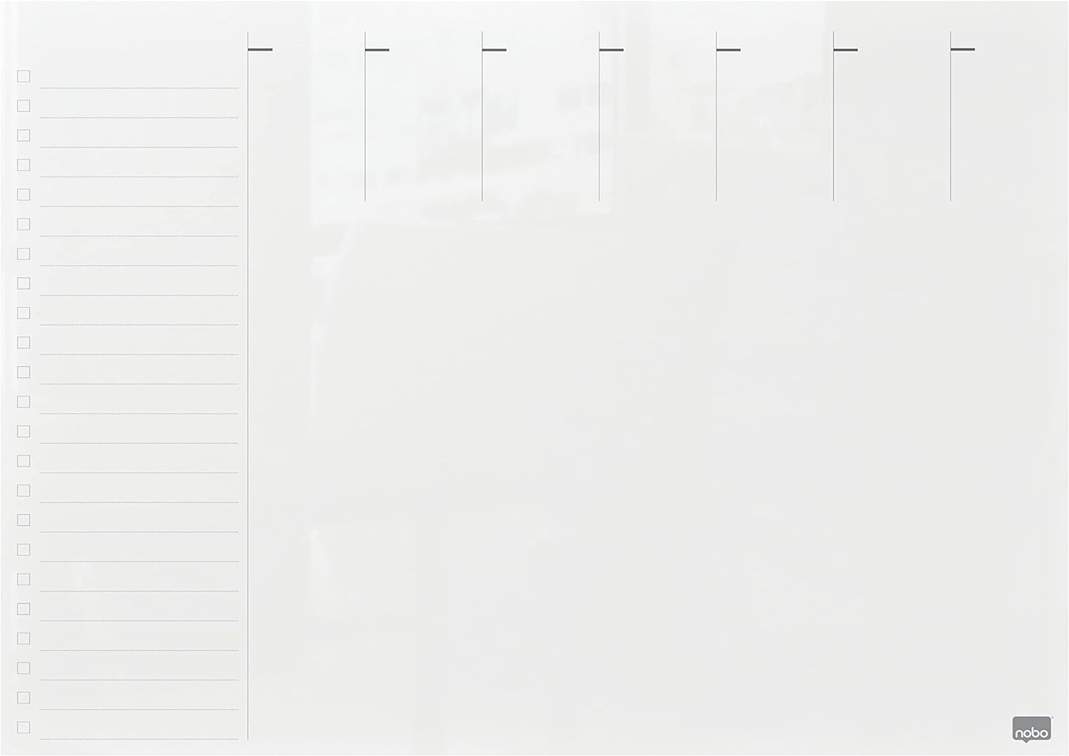 Nobo Glas-Whiteboard Magnetischer Wochenplaner, Trocken Abwischbare Glas-Oberfläche, Rahmenlos, Zuha