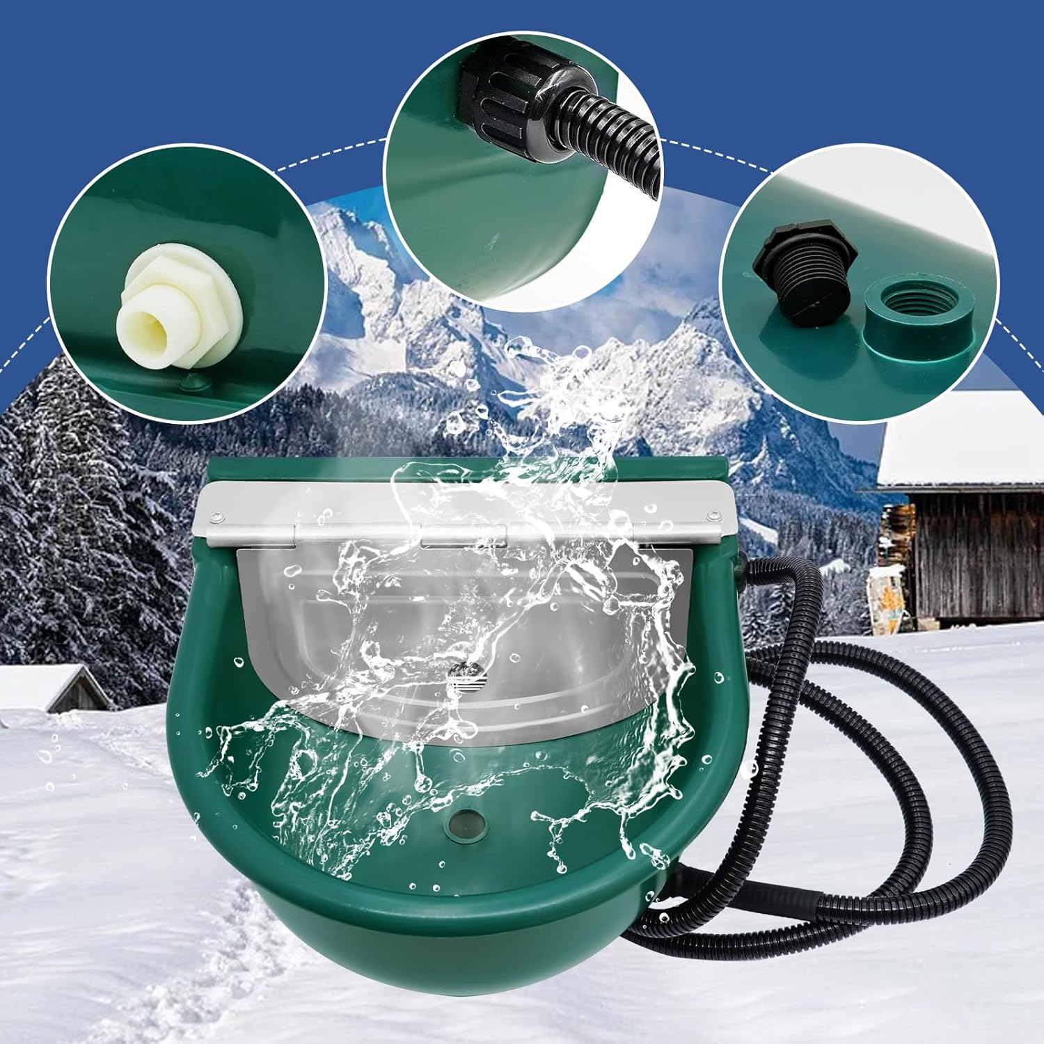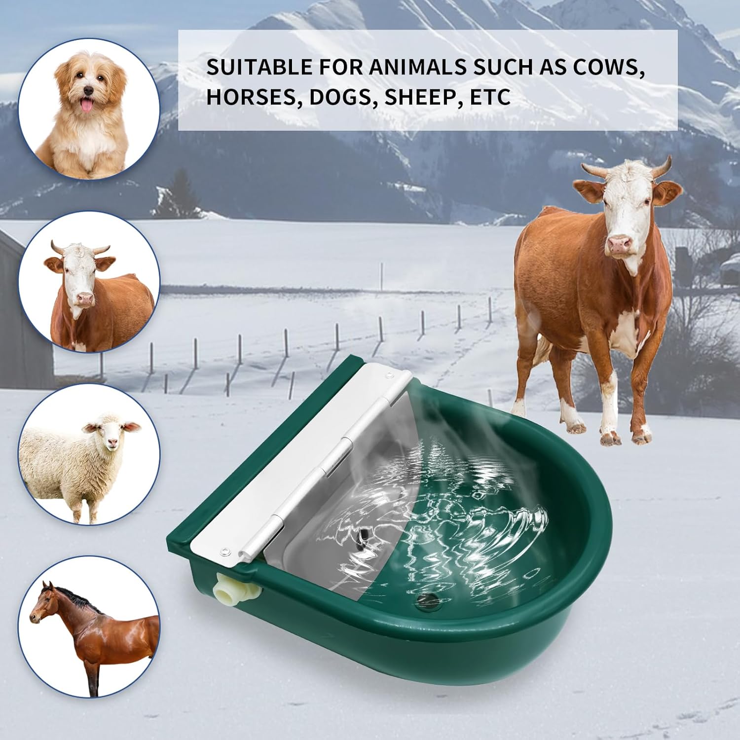 - 🐎LANGLEBIGES MATERIAL: Wassertrog pferd Kunststoffschüssel und Schwimmerventil + Edelstahldeckel werden zum Heizen von Trinkbrunnen für Rinder verwendet, die umweltfreundlich und langlebig, sicher und ungiftig, rostfrei und verschleissfest,
