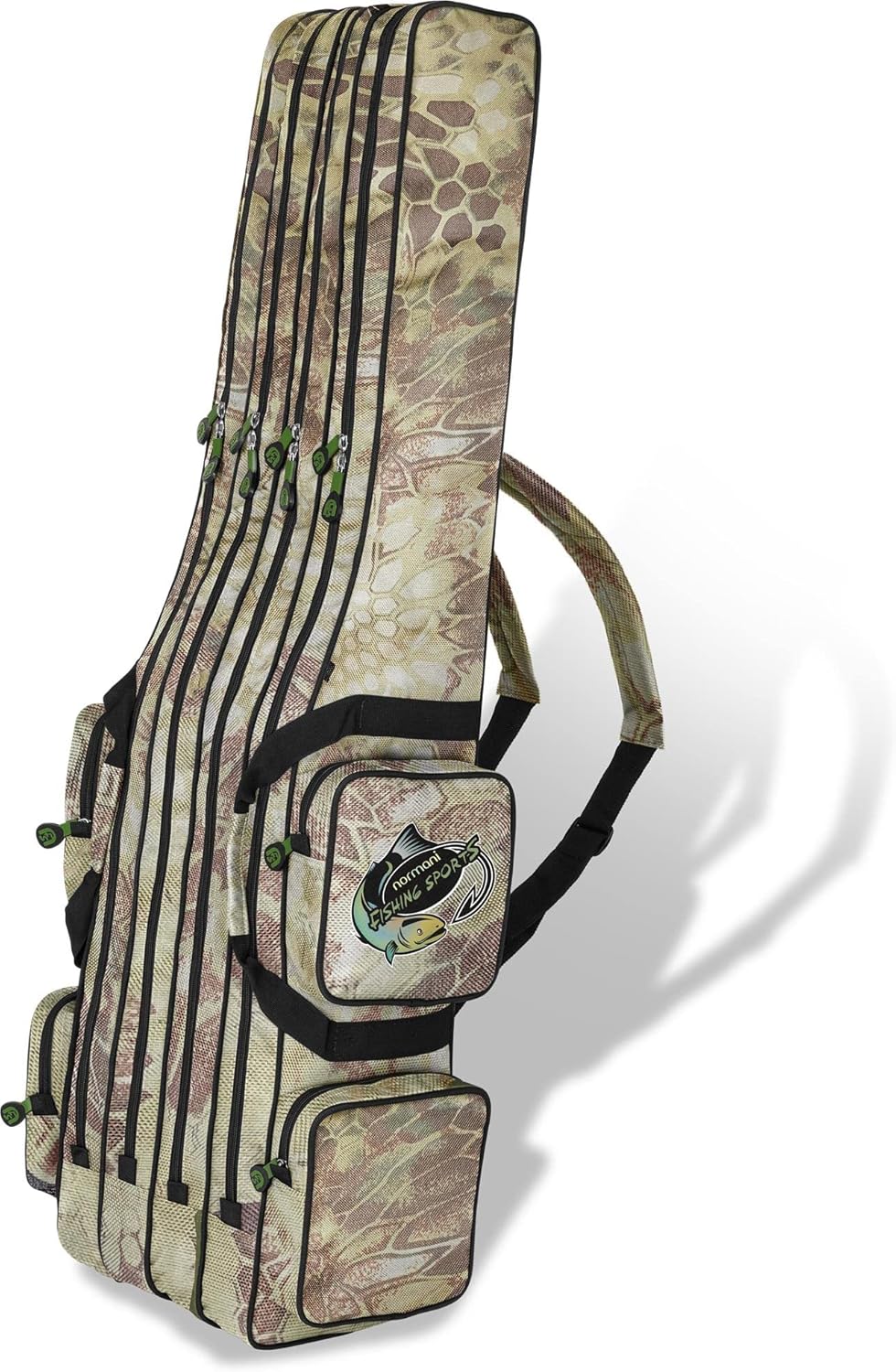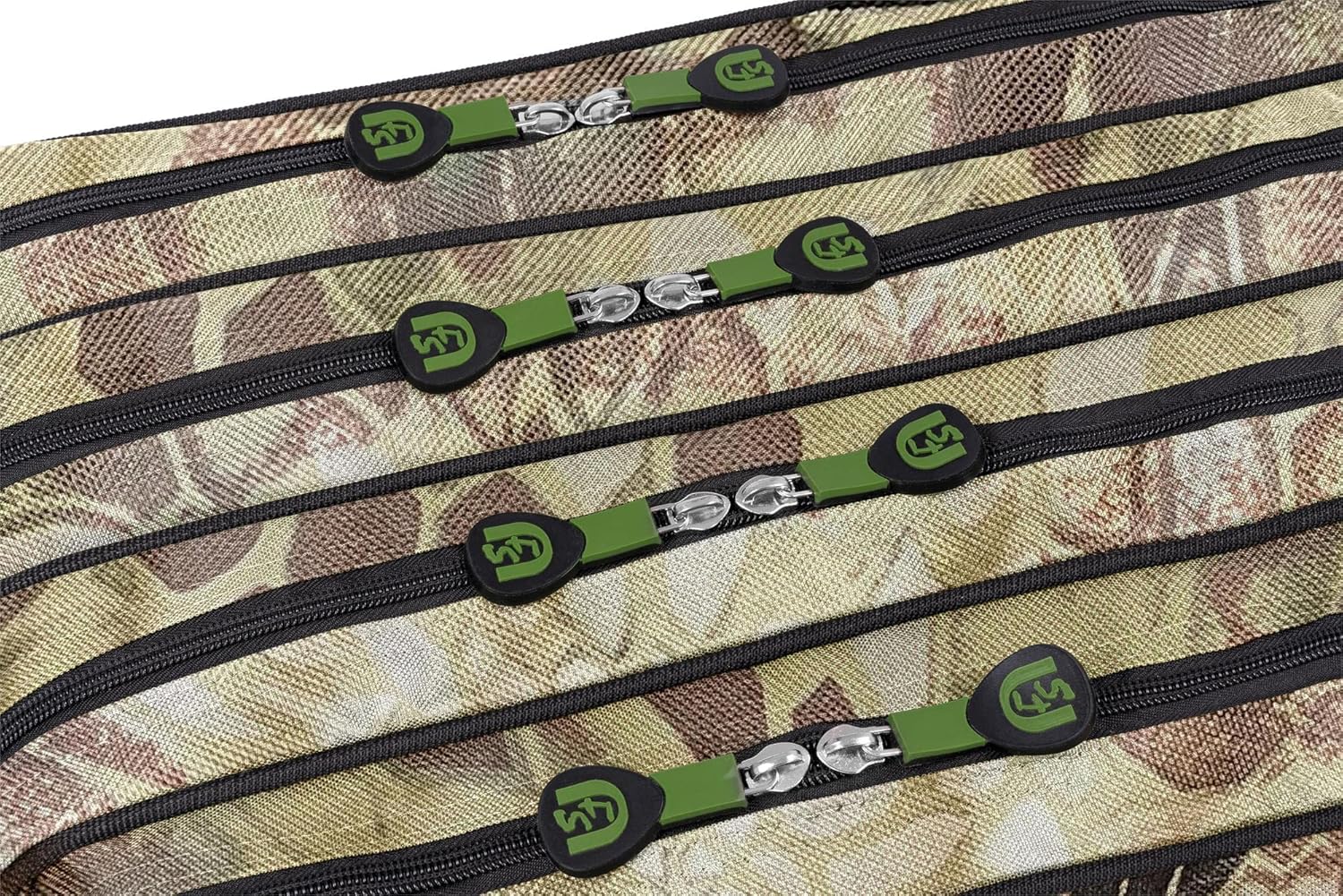 - Rutentasche mit 4 separaten Innenfächern für 8 Ruten - für je 2 montierte Ruten pro Fach (sehr viel Strauraum) - 2 x Seitenfach: 20 x 20 x 7 cm - 2 x Seitenfach: 20 x 10 x 6 cm - 1 x Kescherfach: 95 x 11 x 5 cm