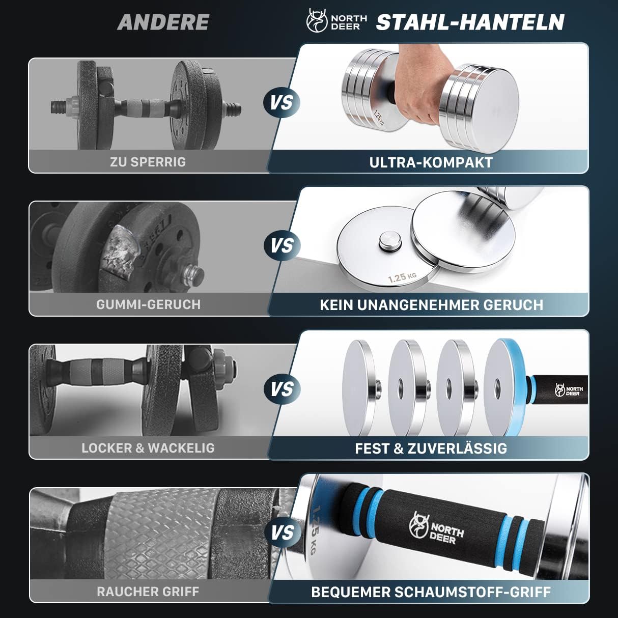 - ULTRAKOMPAKT & SICHER: Die neue Generation der Northdeer verstellbaren Hanteln ist die perfekte Kombination aus Robustheit und Platzersparnis. Hergestellt aus massivem Stahl, sagen sie Auf Wiedersehen zu sperrigen traditionellen Hanteln. Egal, ob du