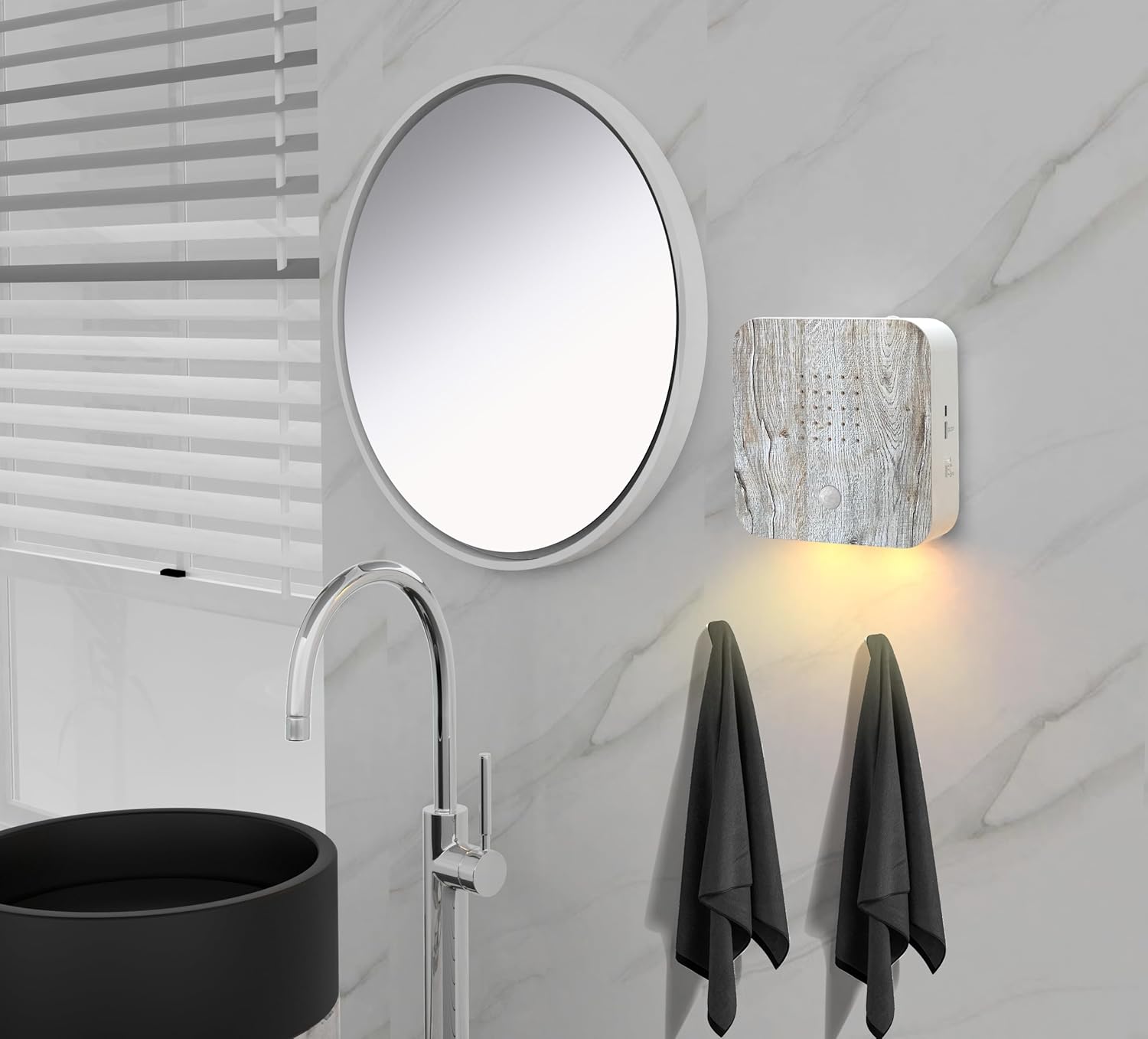 - Wunderschön gestaltete Natur-Soundbox mit integrierter Beleuchtung und Musikfunktion. Ideal zur Entspannung im Bad oder Flur.
