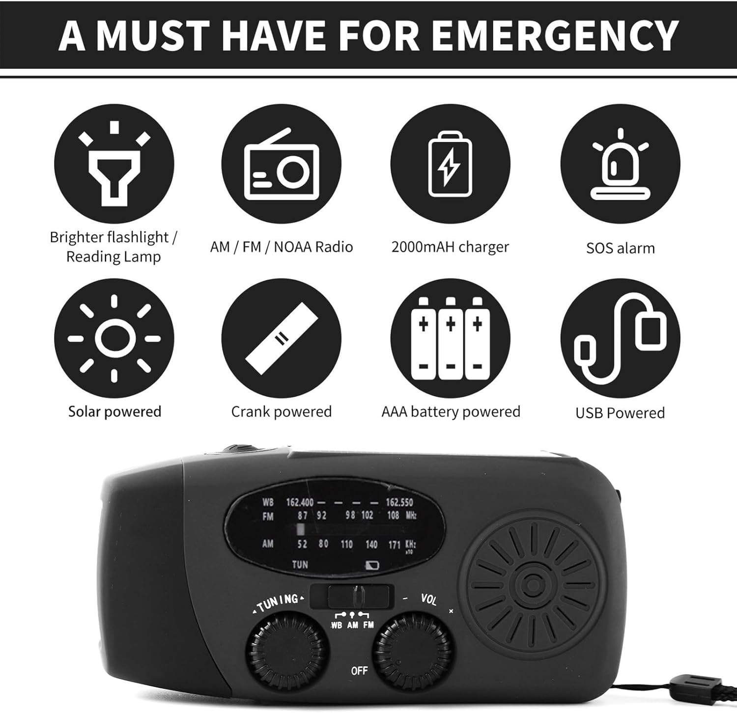 - Notfallradio Sorgen Sie für die Sicherheit Ihrer Familie: Dieses AM/FM/NOAA-Radio ist eine sorgenfreie Möglichkeit, wichtige Wetter- oder Nachrichtenaktualisierungen zu hören, wirklich ein Lebensretter für Sie, um Hurrikane, Tornado, Sturm, Feuer und
