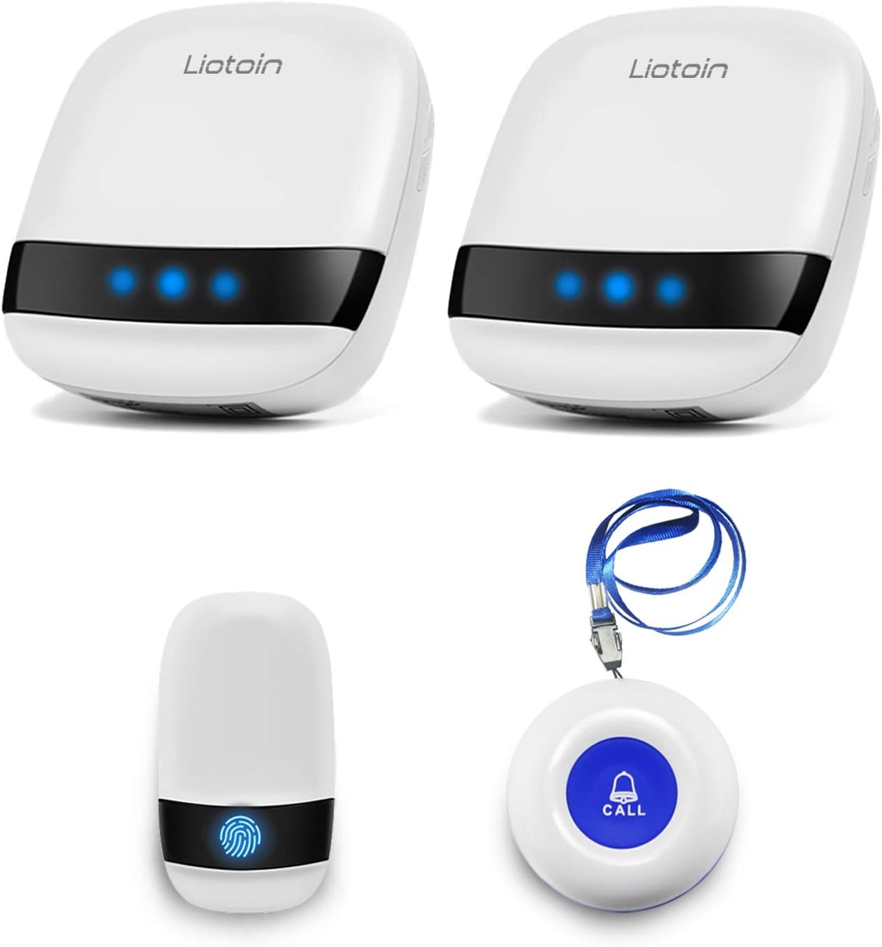 - 【Notfallknopf für die Wohnräume】2 Sender und 2 Empfänger. Der Sender ist mit einem Alarmknopf für Notfälle ausgestattet, den Sie bei einem Unfall oder sonstigen Problem einfach drücken. Ein davon ist die Touchscreen. Hausnotruf für Senioren
