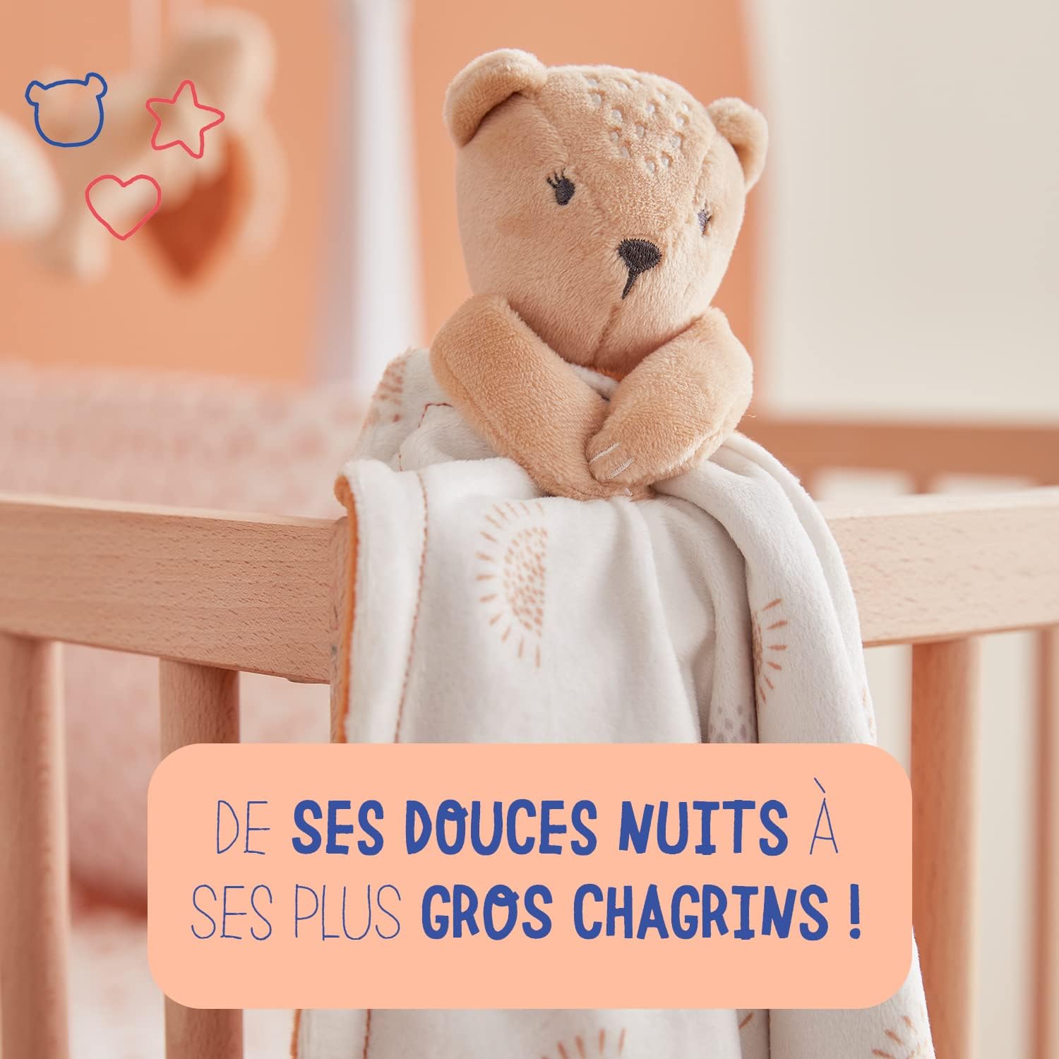 - Ein süsses Kuscheltier und seine Decke: "Meine erste Decke", es ist ein süsses Kuscheltier für Babys, begleitet von einer kleinen, weichen Kinderdecke, um das Baby zu beruhigen, wenn Papa und Mama nicht da sind.