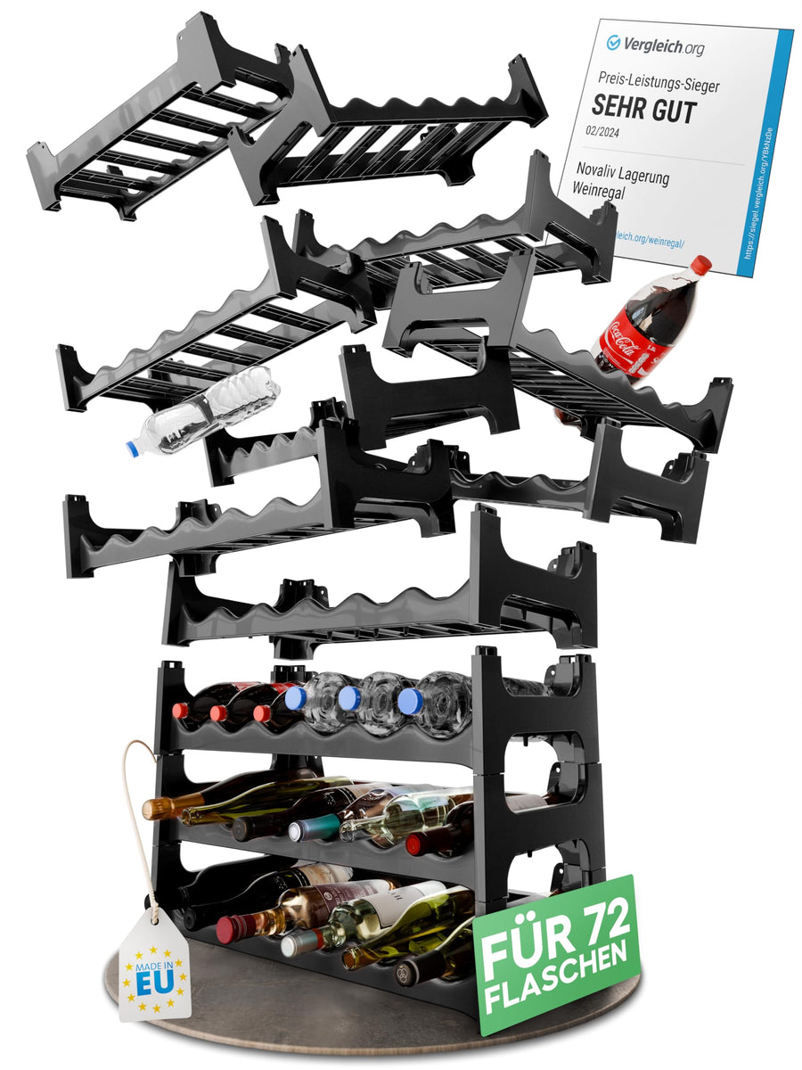 - Lieferumfang: Sie erhalten 12x Flaschenregal für 72 Flaschen der Marke Novaliv