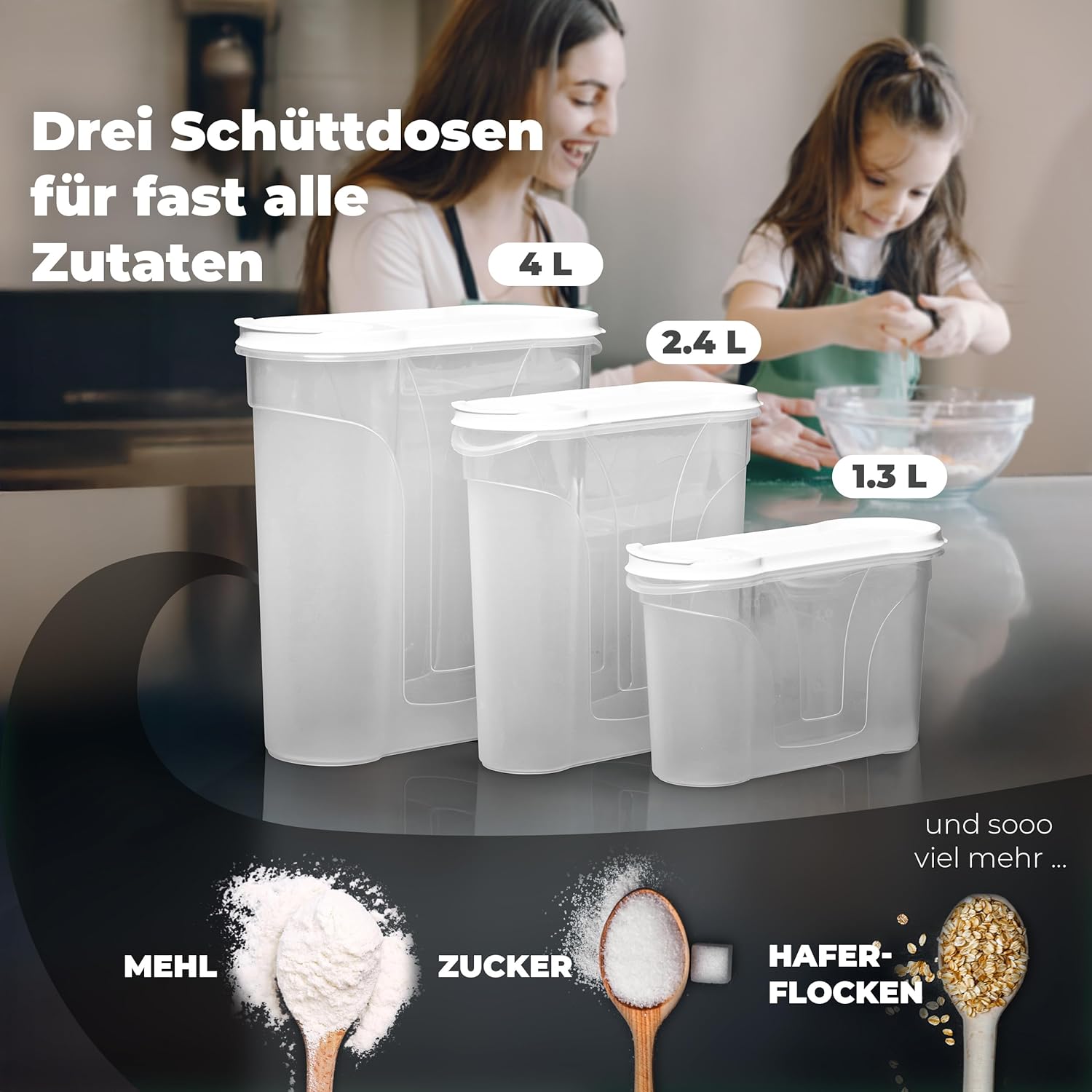- PLATZSPAREND & PRAKTISCH - Müslibehälter oder Vorratsdosen für Cornflakes & Zucker - Mehl Schüttdosen für müheloses Befüllen