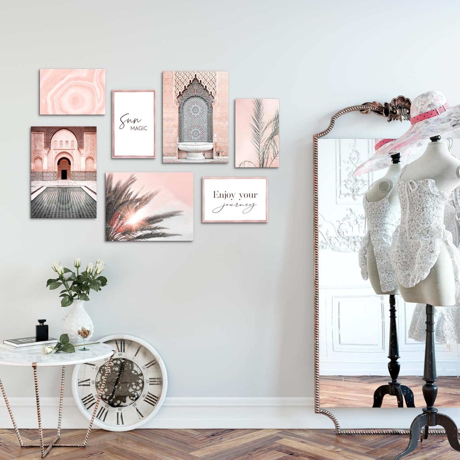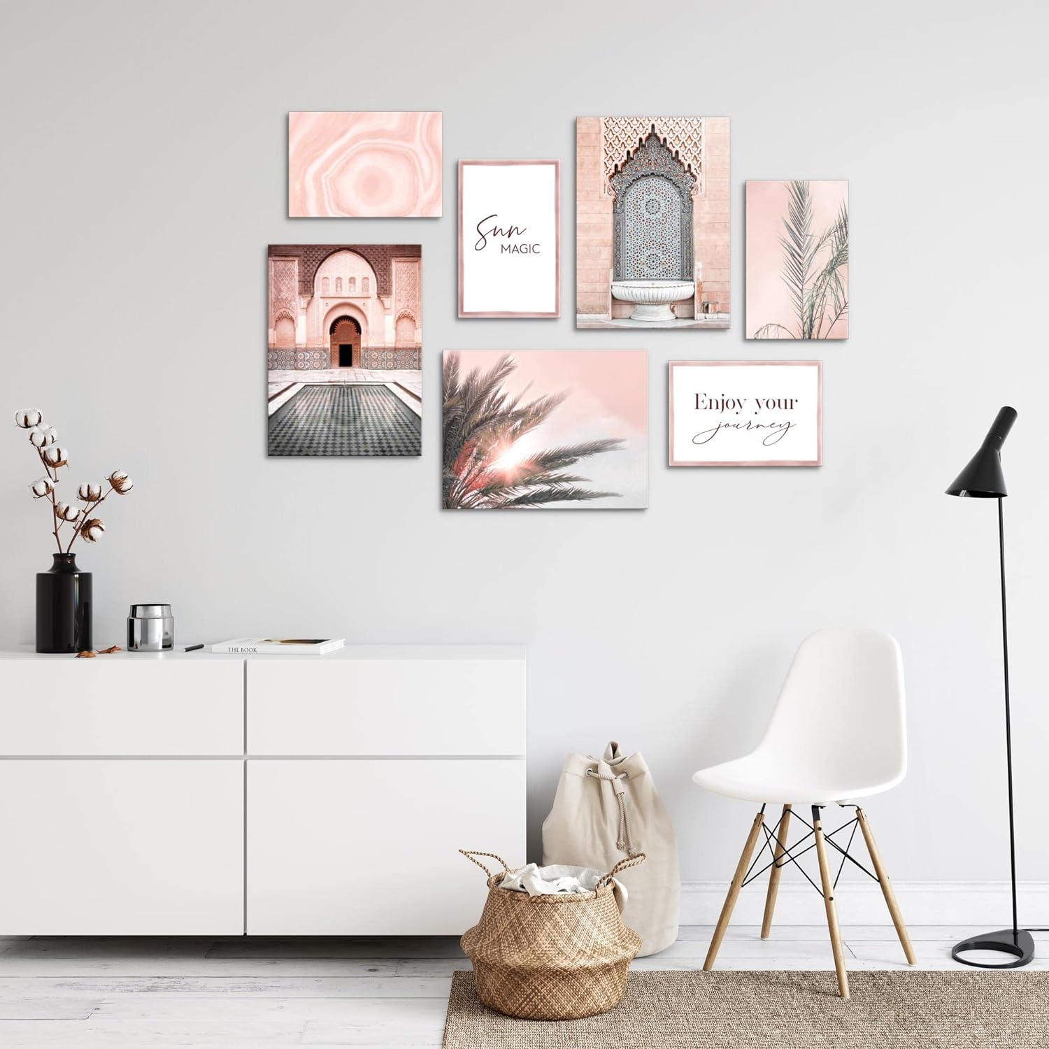 Novart Wandbilder Oriental Marokko Palme - KOMPLETT AUFHÄNGFERTIG - Rosa Beige Wohnzimmer Schlafzimm